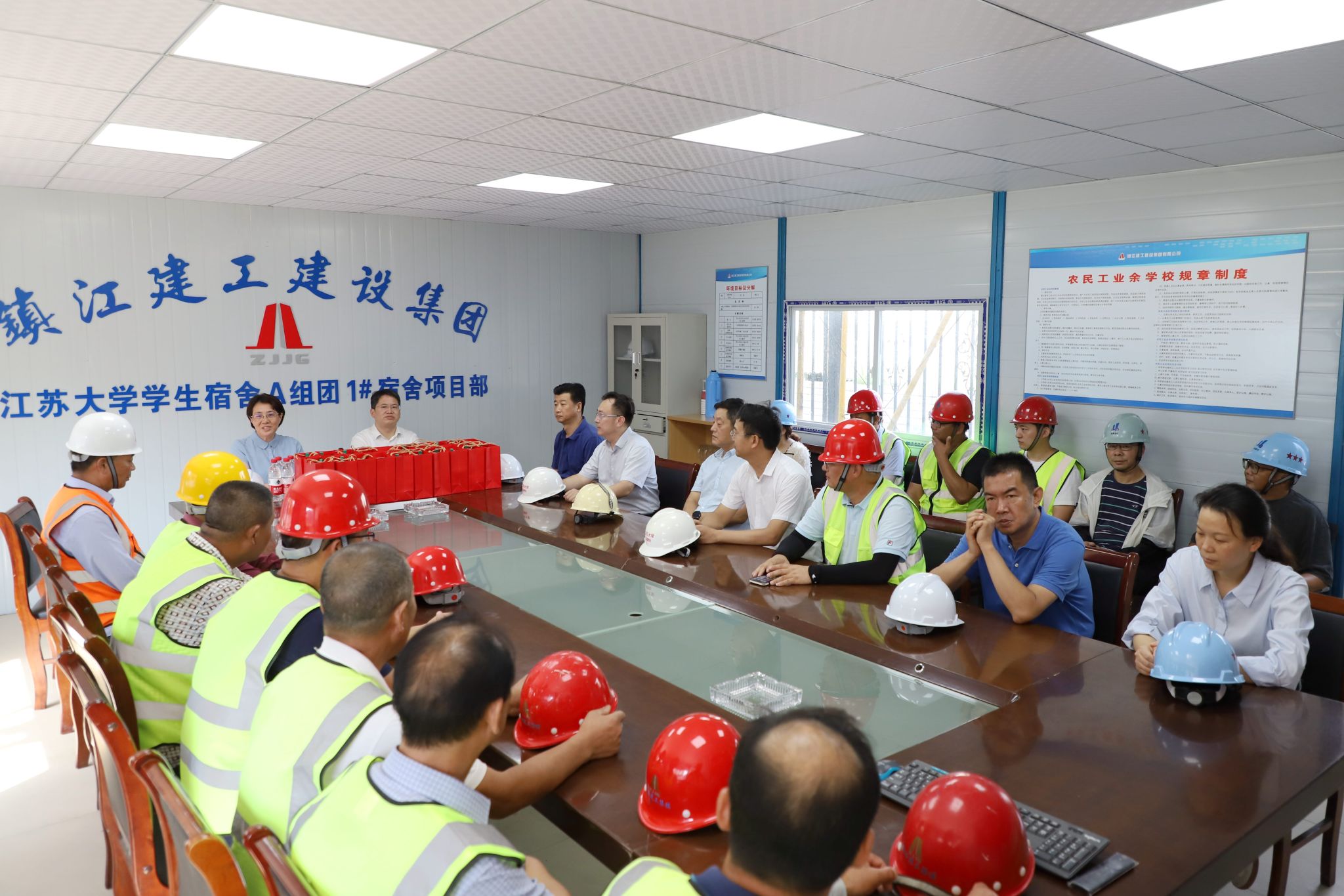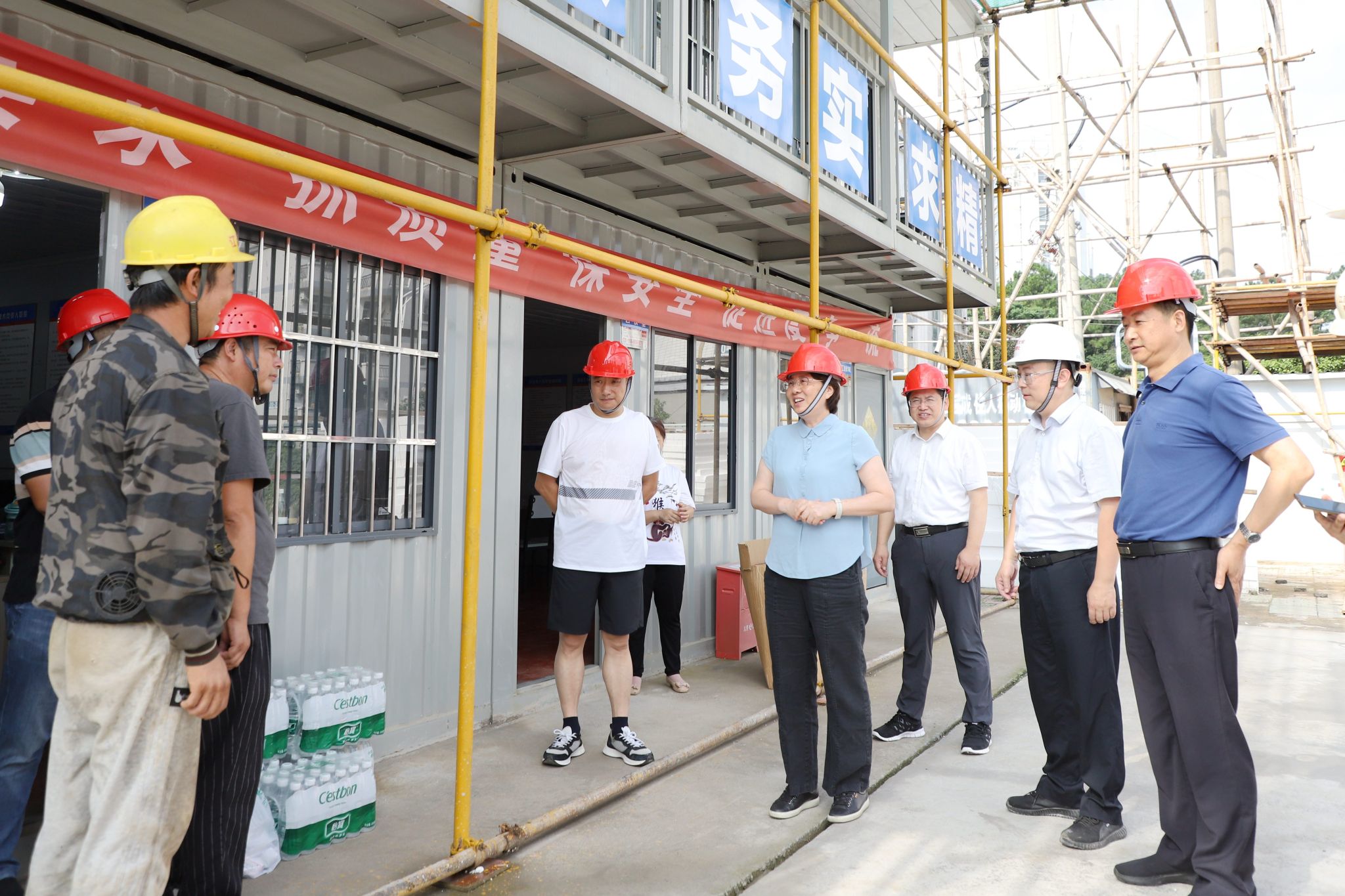 7月31日,校长邢卫红、副校长邹小波一行对青年教师周转公寓项目、学生宿舍A组团项目、学生宿舍暑期出新项目等建设情况进行现场调研,慰问一线施工与管理人员。