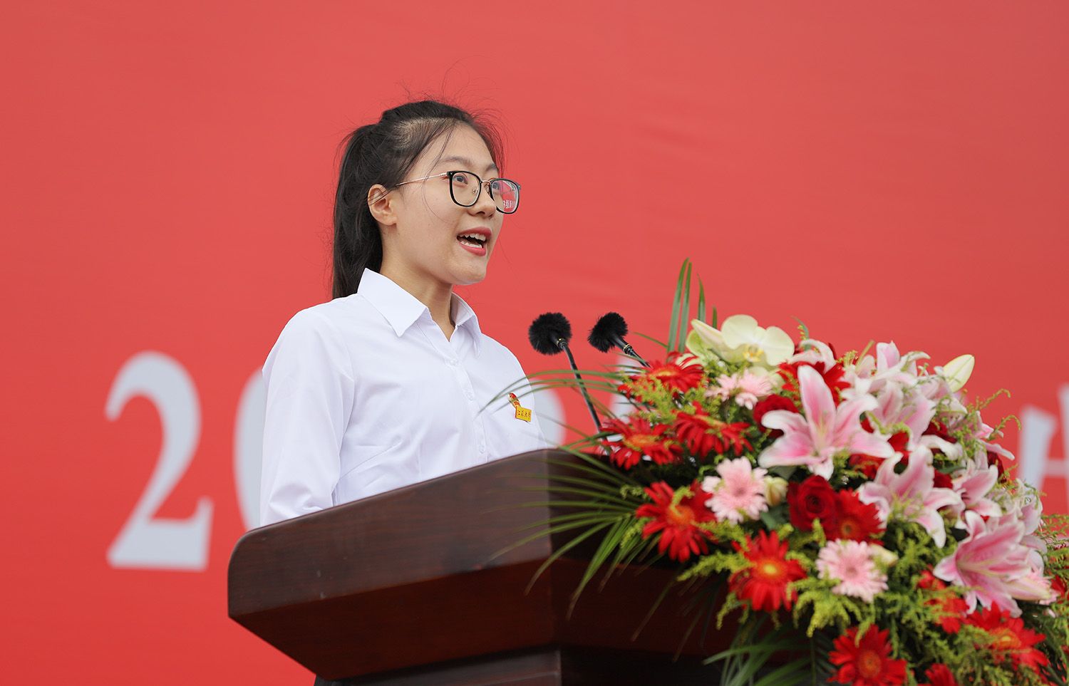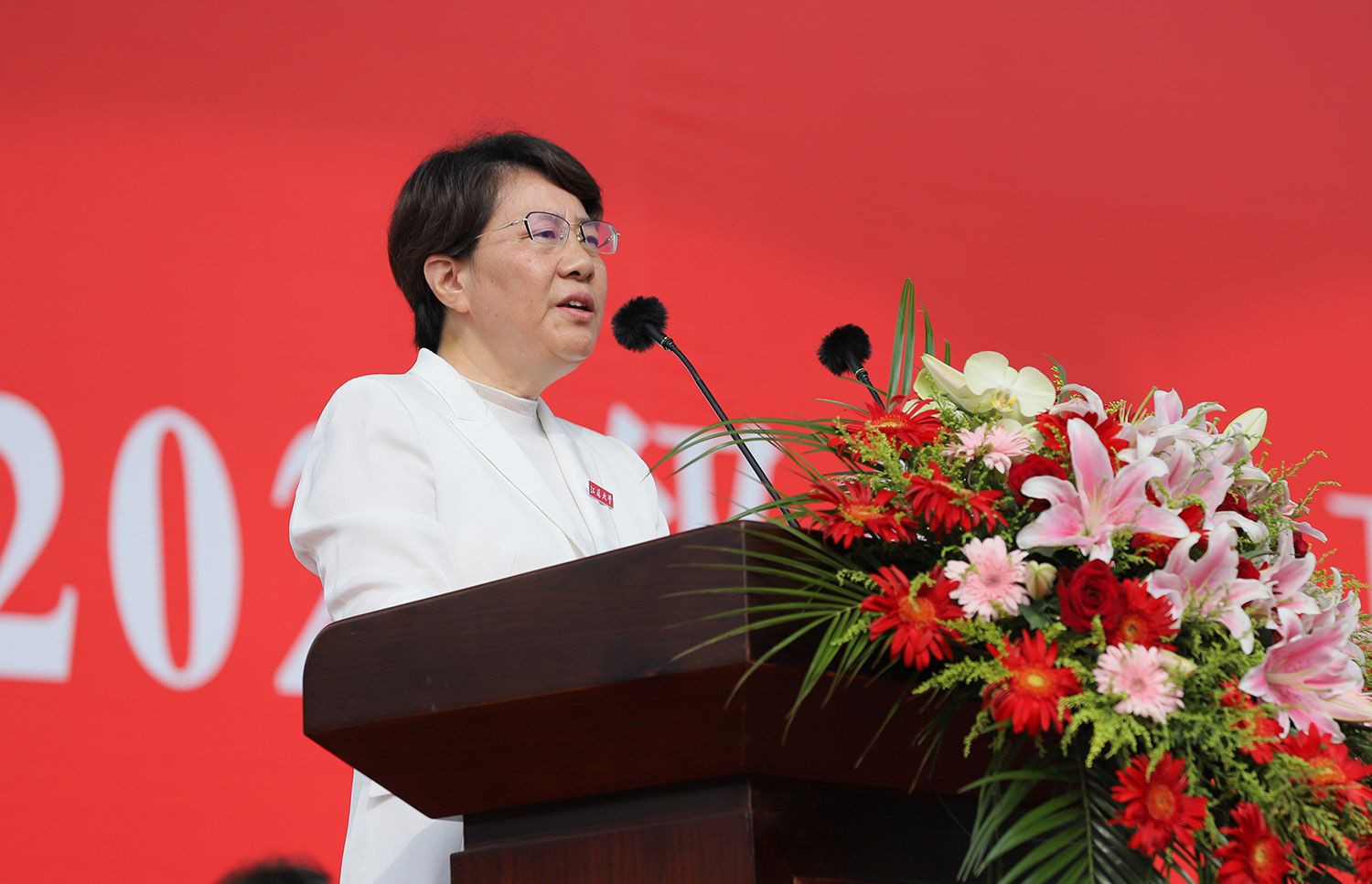典礼上,校长邢卫红讲话,代表学校向全体2023级新生表示热烈欢迎,向辛勤指导训练的军训教官致以崇高敬意。邢卫红说,乐鱼app官网登录入口历史悠久、底蕴深厚,鸿儒云集、人才辈出,特色鲜明、使命光荣,同学们在这里求学逐梦,故事会更加精彩,将来大有可为。邢卫红用三句话与全体新生共勉:一是“博学”,把学习作为第一任务,在博学善思中筑牢成长根基;二是“求是”,把创新作为第一本领,在求是探索中增长智慧才干;三是“明德”,把人品作为最高学历,在明德笃行中担当时代大任。邢卫红希望全体新生惜时如金、晴耕雨读,在“博学、求是、明德”校训和“自强厚德,实干求真”乐鱼(中国)精神指引下,创造更多精彩,成就美好将来。她也提出一个小希望:同学们要养成习惯,每天给家人报平安、与家人分享校园生活。