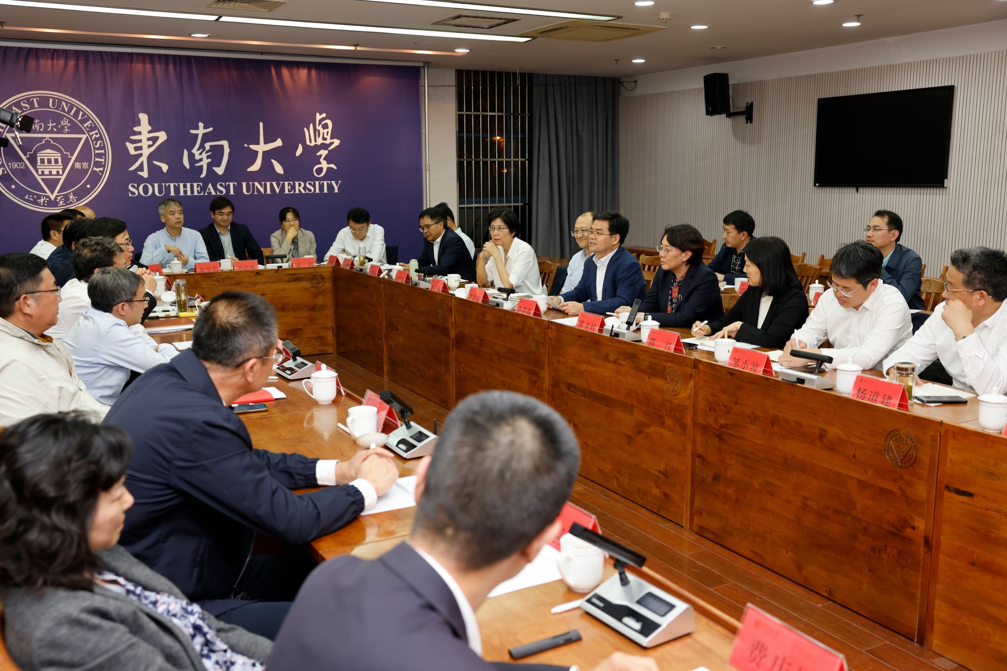 东南大学党委书记左惟、常务副校长吴刚、副校长钟文琪、党委副书记邢纪红出席调研活动。会上,左惟对乐鱼app官网登录入口代表团来东南大学调研表示热烈欢迎,并介绍了东南大学“三个服务”等先进做法。他指出,东南大学与乐鱼app官网登录入口同宗同源,具有长久的交流合作历史,在人才培养、科学研究以及文化交流合作等方面取得了丰硕成果,希望以本次座谈会为契机,双方进一步深化合作,强化校际交流,为教育强国建设作出新的更大贡献。邢纪红介绍了东南大学事业发展情况。相关部门负责人各自介绍了部门工作情况。