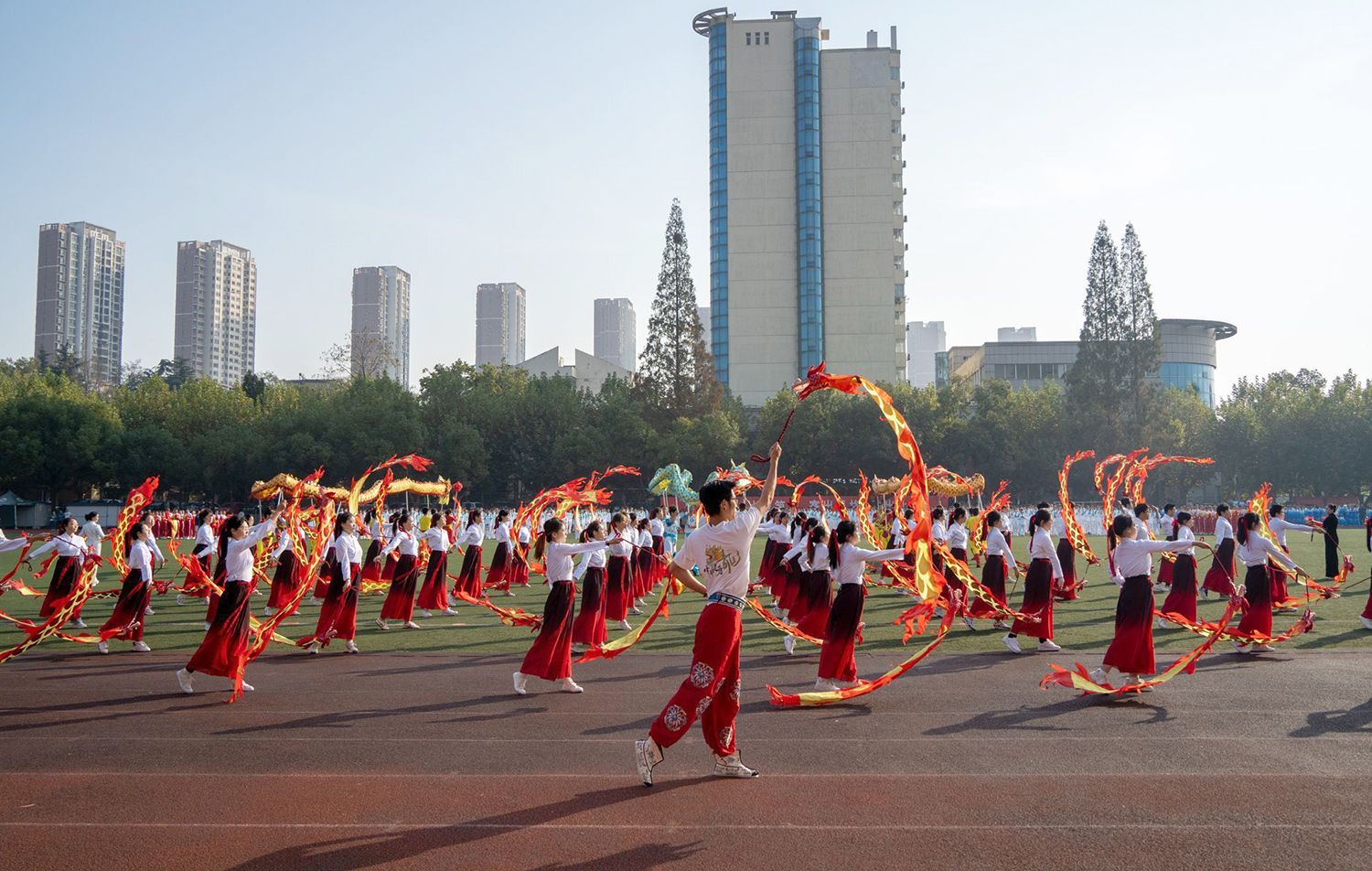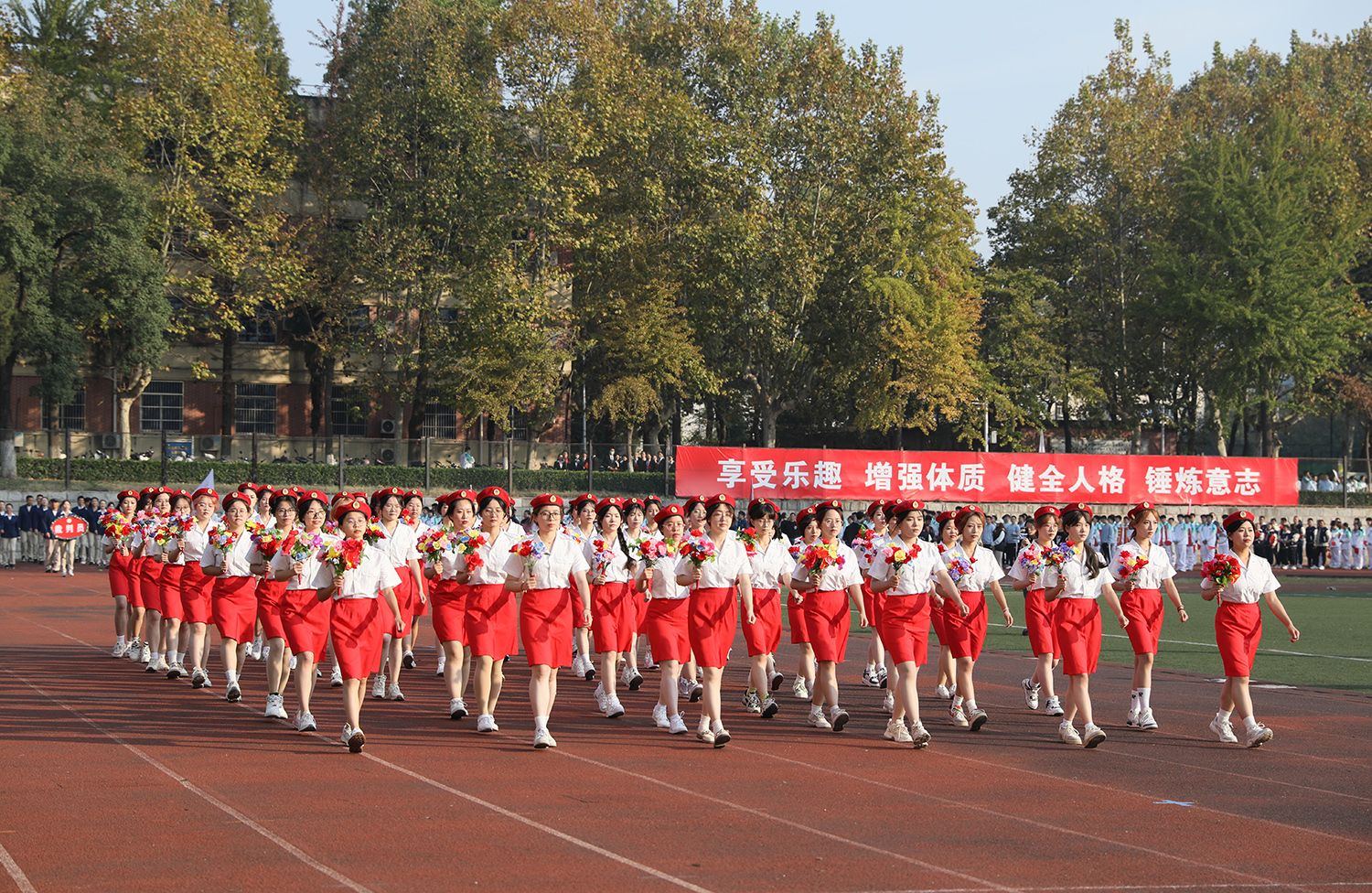 张济建宣布乐鱼app官网登录入口第二十二届运动会开幕。开幕式上,学生进行了舞龙舞狮、排舞表演,教职工进行了太极扇等表演。