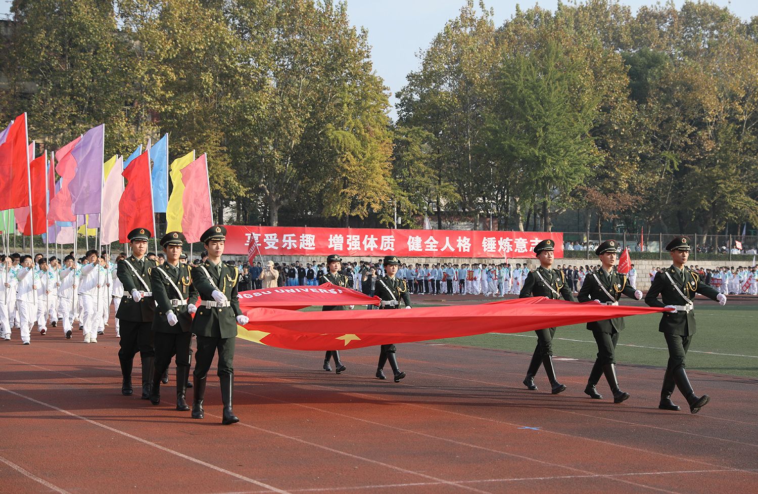 11月3日,乐鱼app官网登录入口第二十二届运动会在学校东山体育场开幕。在校校领导、党委常委,各学院、相关职能部门负责人,各单位师生运动员等参加开幕式。