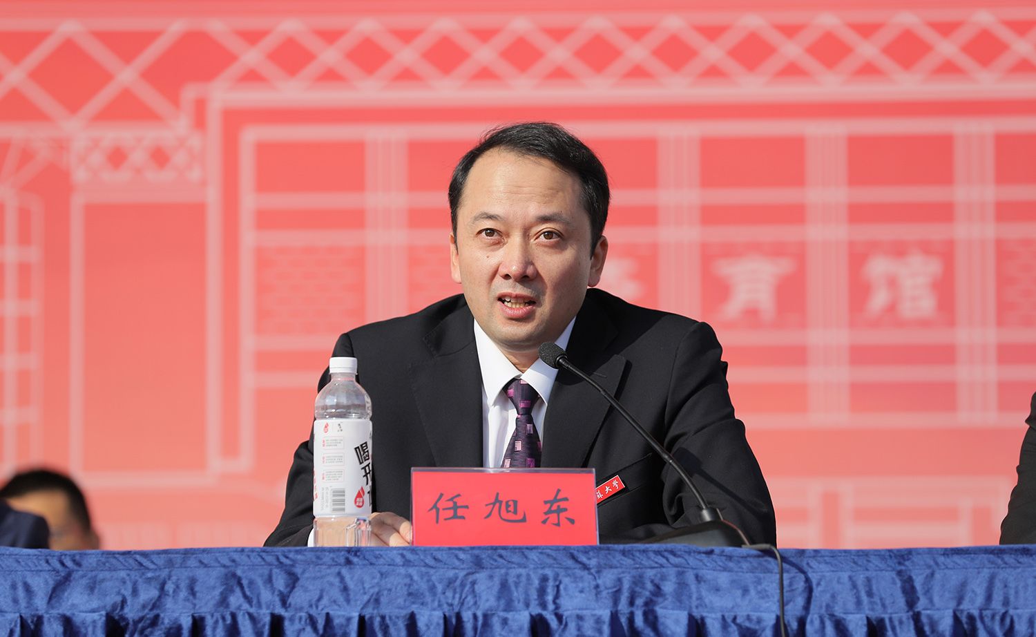 校党委常委、副校长任旭东宣读第二十一届运动会大学生团体总分前八名的单位和2022-2023年度教工群众体育工作先进单位表彰名单。主席台领导为获表彰单位颁奖。