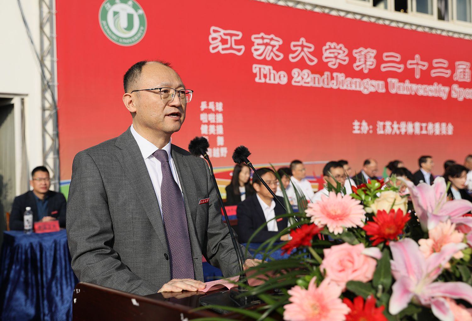 校党委副书记张济建致开幕辞。他指出,一年来,在全校师生的积极参与和共同努力下,学校体育工作取得丰硕成果,学校成功入选首批全国健康学校。在体育教学方面,完善了体育课程体系,实施课外阳光长跑活动,学生体质健康测试达标率、优良率逐年提高;在群众体育方面,举办第二十一届运动会田径比赛,精心组织 “乐鱼(中国)杯”大学生男女篮球、“校长杯”足球、排球、羽毛球、乒乓球、定向越野、游泳、排舞等赛事,极大地丰富了师生的校园体育文化生活,广大师生积极参与体育运动的校园氛围日益浓厚;在竞技体育方面,学校运动员敢于拼搏、勇争一流,在国际、同内重量级比赛中取得丰硕成果。他希望师生在今后的学习工作中,大力发扬体育运动蕴含的争先意识、拼搏精神和坚强意志,助力学校“双一流”创建和特色鲜明高水平大学建设。