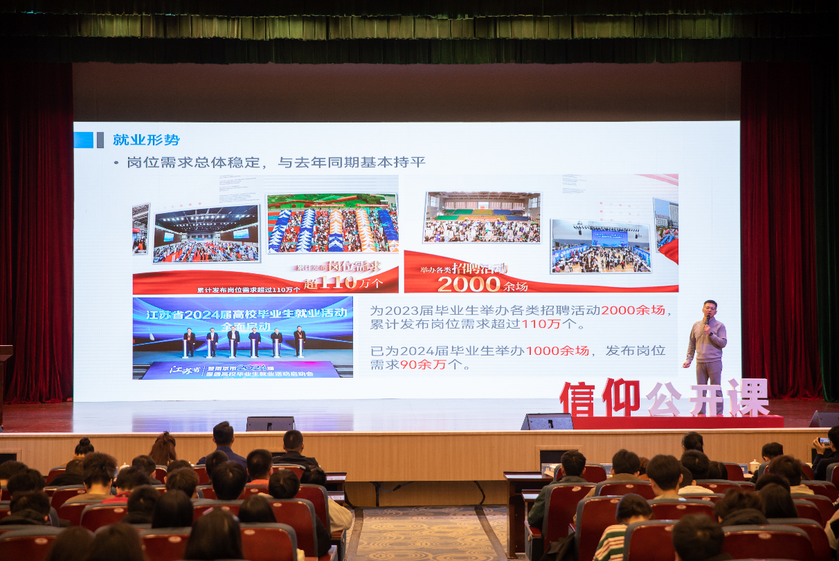 校党委常委、副校长杨道建,共青团江苏省委高校部负责人赵峰,省级就业引航宣讲团成员出席活动。宣讲会由校团委书记张永强主持。