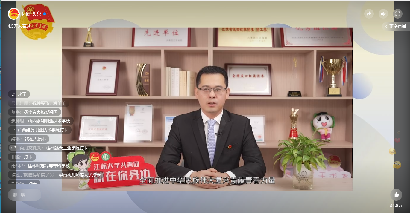 近日,我校共青团以《青春与基层“双向奔赴”,书写实践育人“大文章”》为题,在团中央高校共青团改革沙龙平台上作经验交流分享。此次分享在“团建头条”视频号、“中国青年报”客户端、“共青团新闻联播”“学校共青团”等多个平台同步直播,获34万人次点赞。