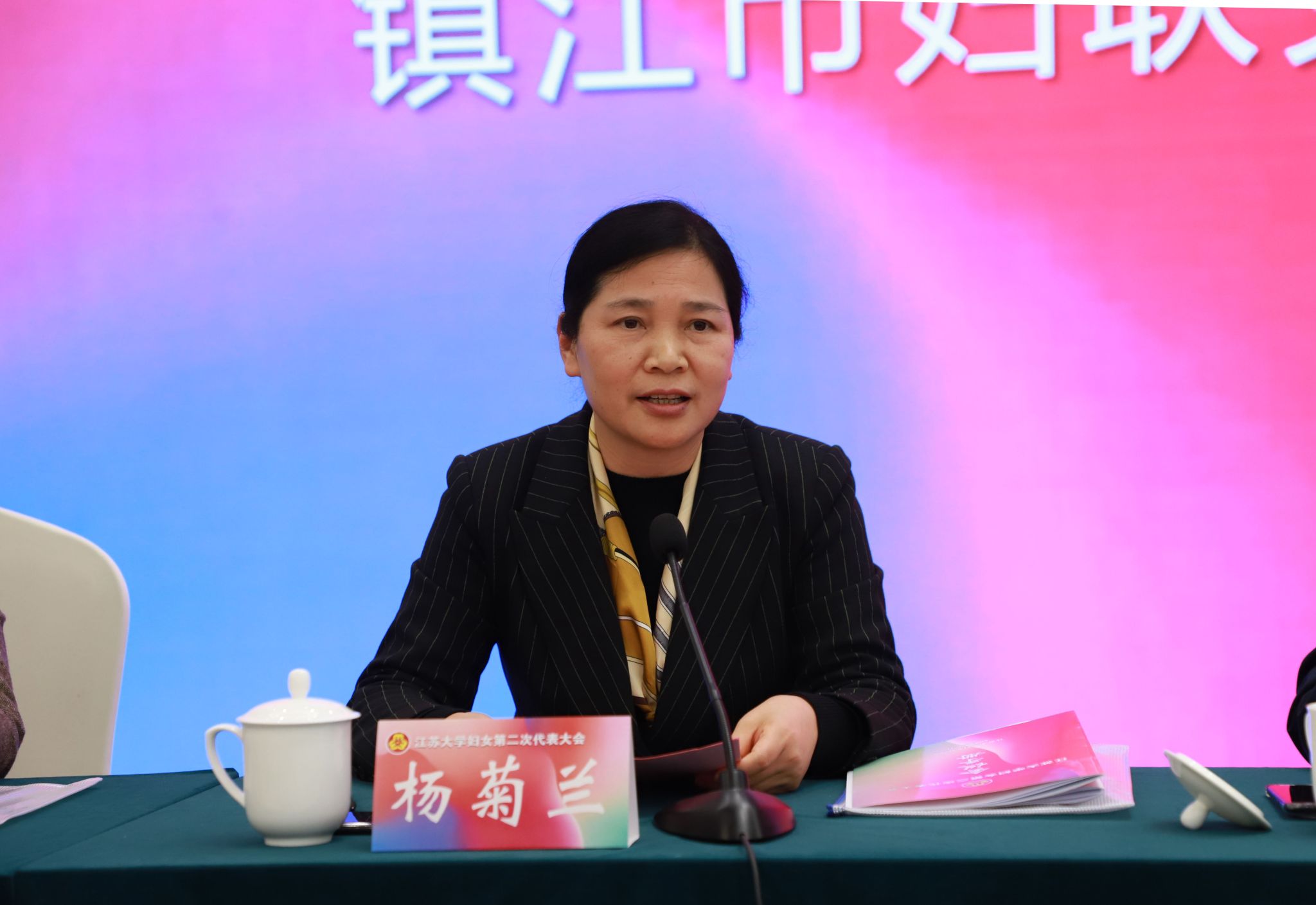 会上,杨菊兰代表镇江市妇联向大会的召开表示热烈祝贺。她充分肯定了乐鱼app官网登录入口妇联成立以来的工作和成绩,对乐鱼app官网登录入口妇联提出了殷切希望:切实强化思想政治引领,坚持不懈用习近平新时代中国特色社会主义思想凝心铸魂;切实发挥“妇女能顶半边天”的重要作用,为社会及学校各项事业高质量发展注入强劲澎湃的巾帼力量;切实强化服务保障,不断增强广大妇女同志的获得感、幸福感、安全感;切实强化自身建设,在联系发展协同共建中凝聚更广泛的巾帼力量。