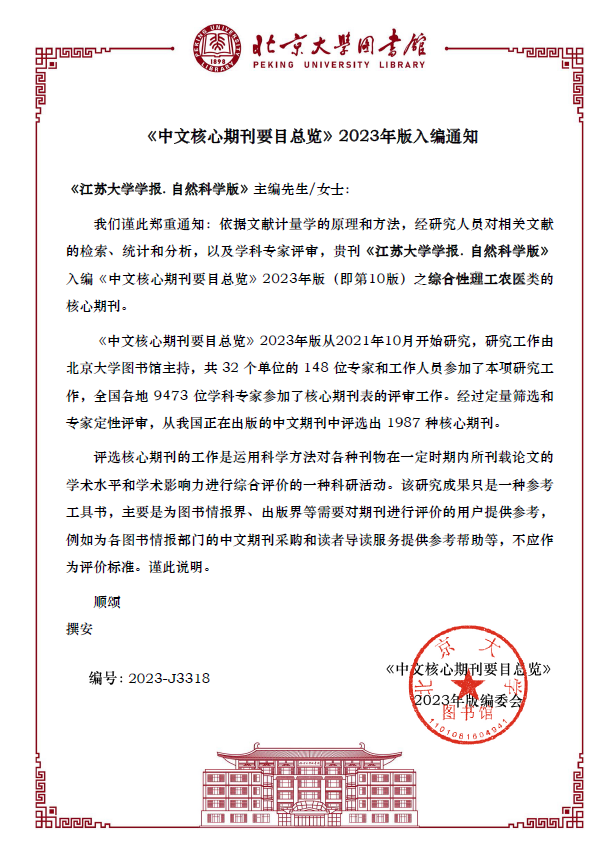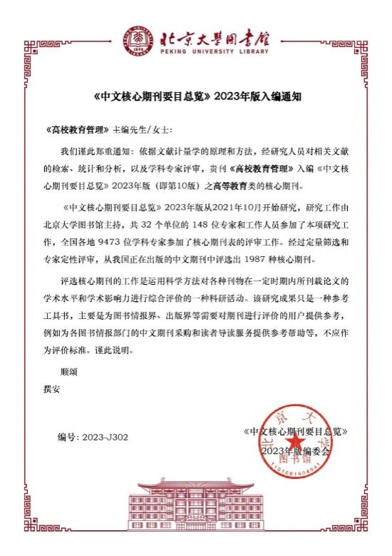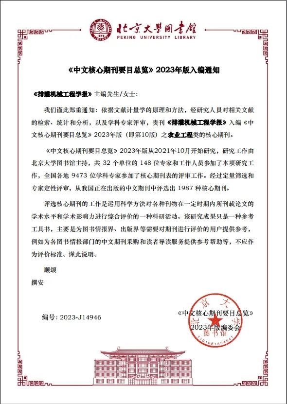 近日,在北京大学图书馆《中文核心期刊要目总览》2023年版(第10版)遴选中,我校主办的《乐鱼app官网登录入口学报(自然科学版)》第8次入选,入编综合性理工农医类核心期刊;《排灌机械工程学报》第7次入选,入编农业工程类核心期刊;《高校教育管理》第4次入选,入编高等教育类核心期刊。