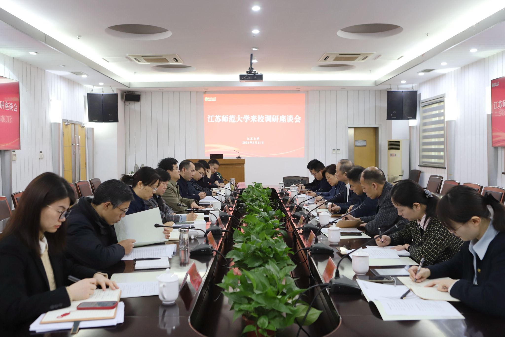 3月21日,江苏师范大学党委书记方忠一行来校调研。校党委书记李洪波与来访人员座谈交流。