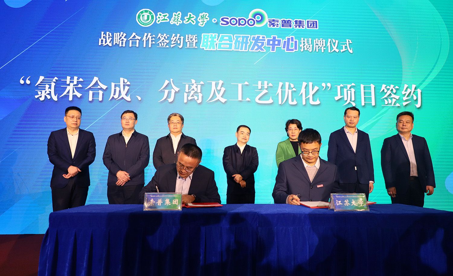 索普集团党委副书记、常务副总经理凌晨,乐鱼app官网登录入口产学研合作处处长汪少华共同签订乐鱼app官网登录入口-索普集团联合研发中心协议。