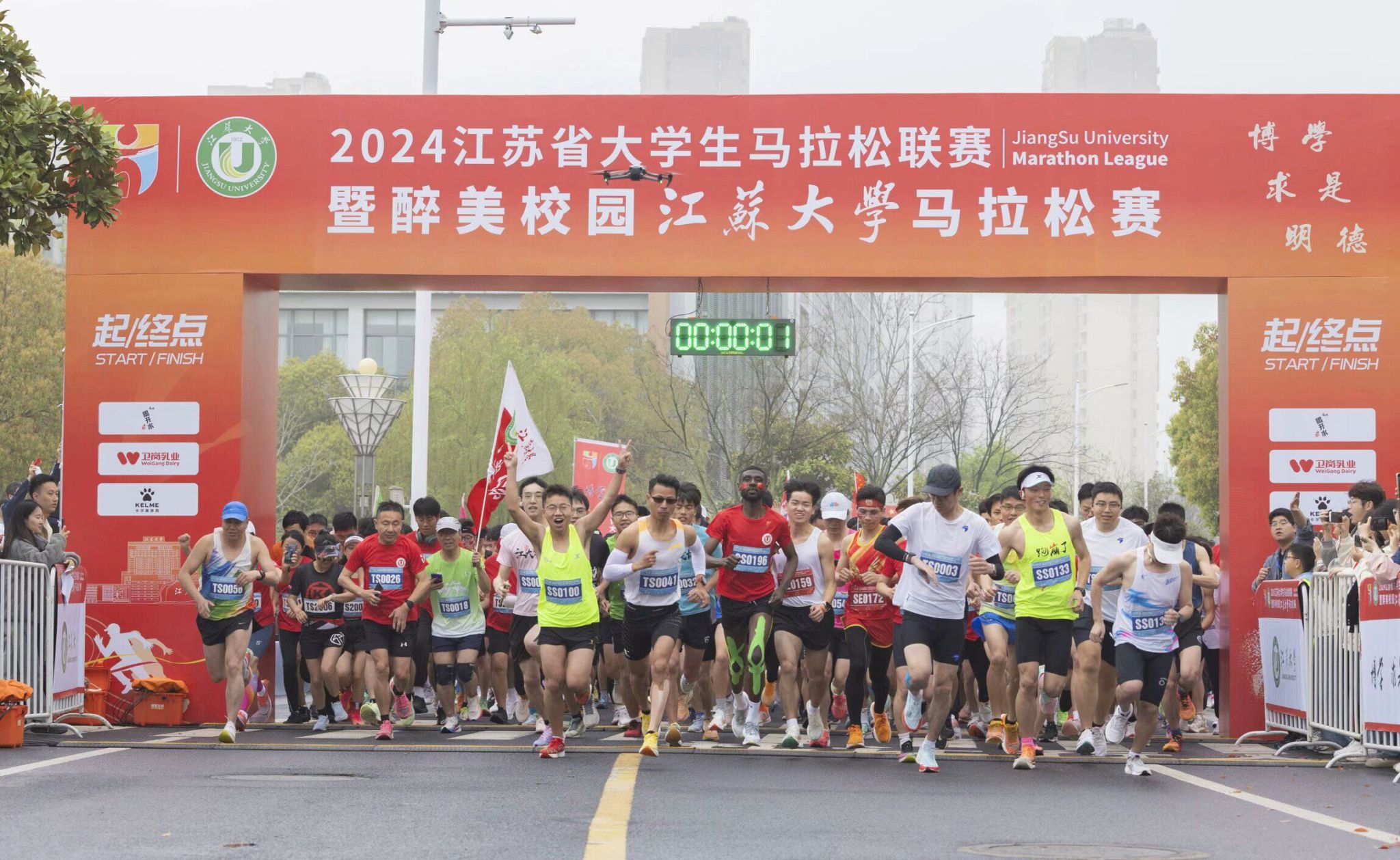 校党委书记李洪波,副校长邹小波、任旭东,校友代表、南京秦淮风光股份有限公司副总经理刘润,学校各有关单位领导,各地校友与师生选手等参加起跑仪式。