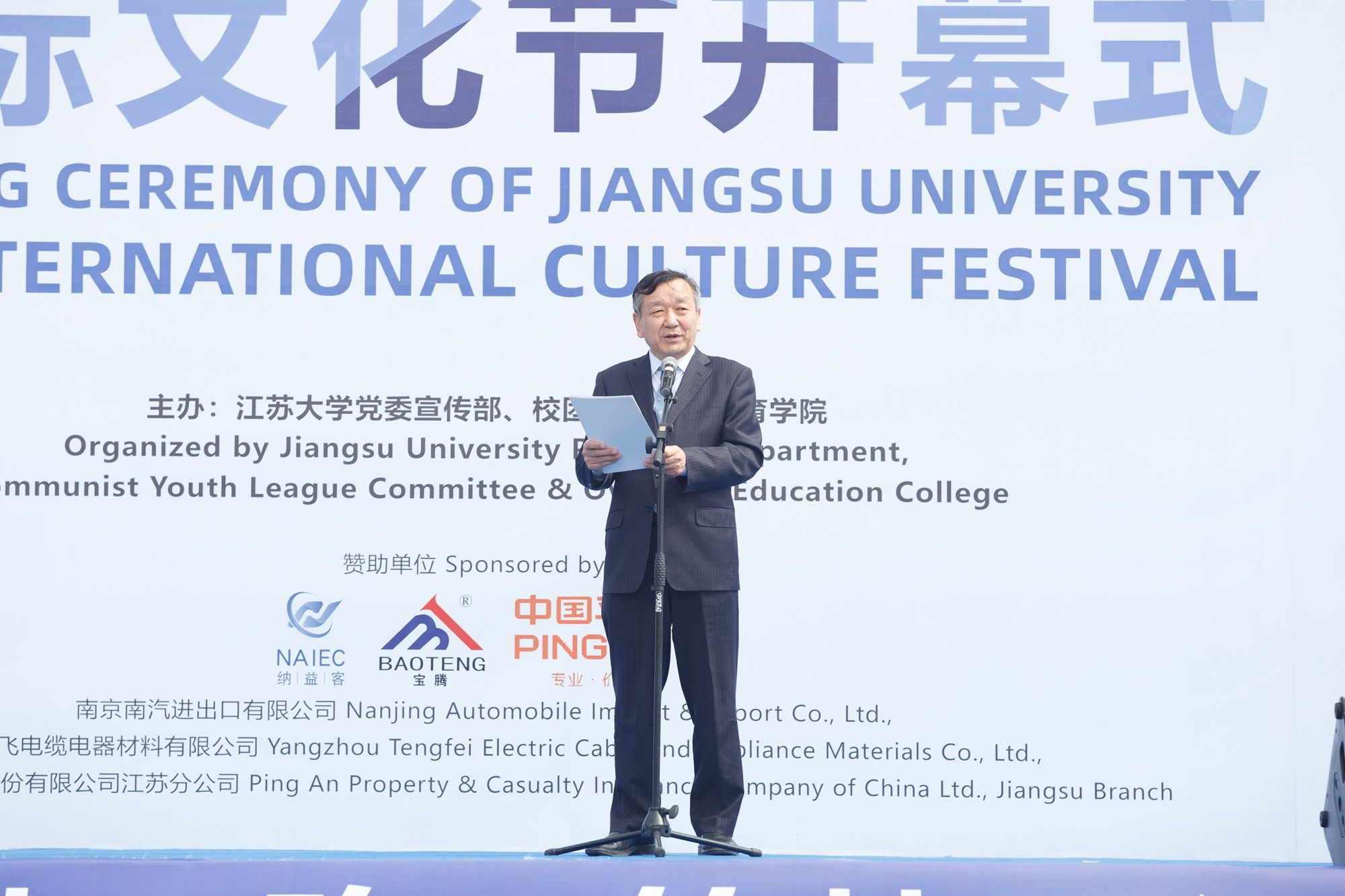 中国—东盟中心秘书长史忠俊,校党委书记李洪波,校党委常委、副校长蔡英凤,校党委常委、宣传部部长、统战部部长吴麟麟,印度尼西亚共和国驻上海总领事馆总领事贝良托·西通吉尔,埃塞俄比亚联邦民主共和国驻华大使馆公使衔参赞格塔丘,俄罗斯联邦和墨西哥合众国外交官代表,江苏省高教学会外国留学生教育管理研究委员会副理事长兼秘书长张海军,镇江市相关政府部门代表,南京南汽进出口有限公司总经理徐启仁、扬州腾飞电缆电器材料有限公司董事长张云等企业家代表以及我校相关部门主要负责人出席开幕式。