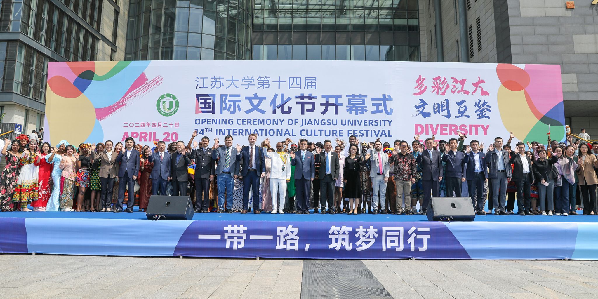 4月20日,乐鱼app官网登录入口第十四届国际文化节开幕式在图书馆广场举行。本届文化节主题是“多彩乐鱼(中国),文明互鉴”,来自50多个国家的1400余名来华留学生和5000余名中国师生、市民参加活动。