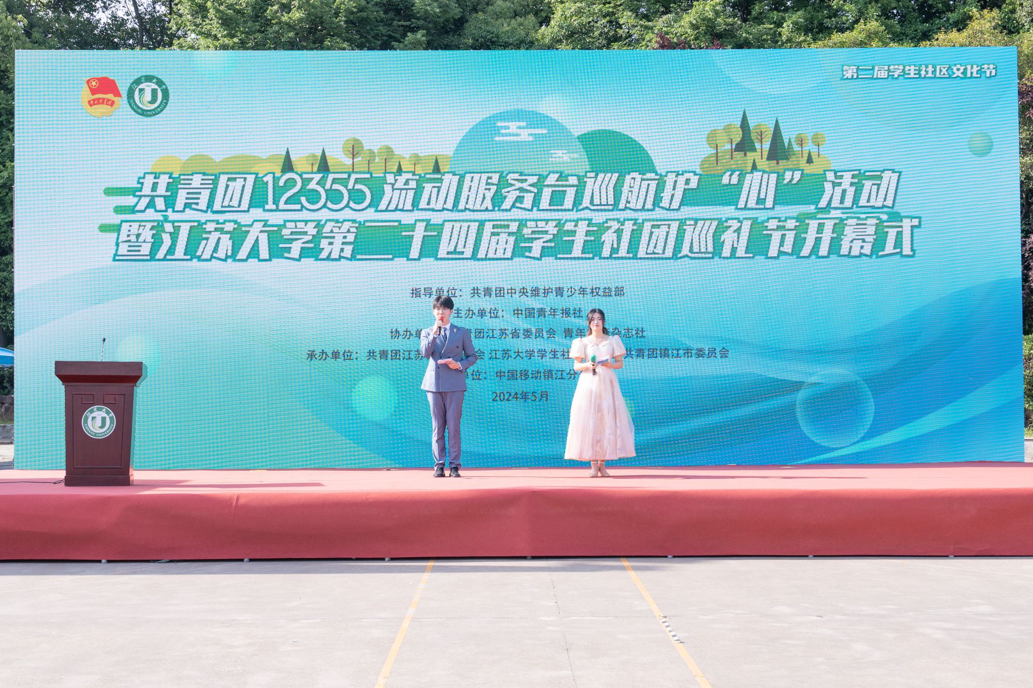 5月13日,共青团12355流动服务台巡航护“心”活动、乐鱼app官网登录入口第二届学生社区文化节暨第二十四届学生社团巡礼节开幕式在西山灯光篮球场举行。