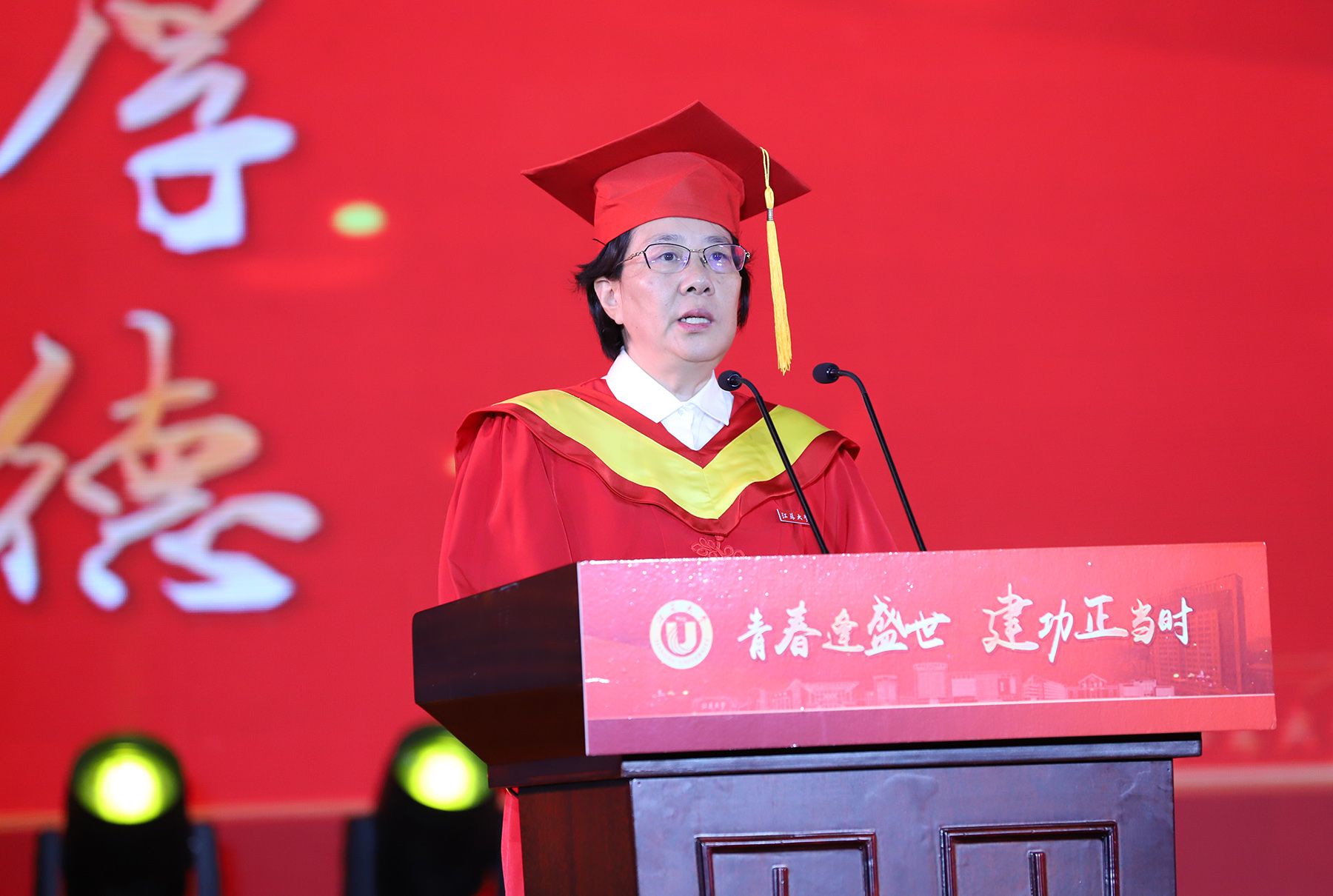 校长邢卫红发表题为《青春不设限 未来更无限》的讲话。她代表学校向即将踏上新征程的全体毕业生致以最热烈的祝贺。邢卫红在讲话中深情寄语,充分肯定毕业生们在校取得的优异成绩,鼓励同学们继续与伟大时代同向同行,在更广阔的天地绽放更大的荣光。邢卫红说,在乐鱼(中国),2024届毕业生们刻下了青春的记忆和模样、积攒了前行的底气和力量,走出了不平凡的足迹,递交了优秀的成绩单。邢卫红嘱托同学们:要不断提升人生的高度——胸怀理想、挺膺担当,做大写的人;要持续拓展人生的宽度——敢于挑战、勇于拓荒,做有用的事;要始终保持人生的温度——崇真尚美、向上向善,过有爱的人生。邢卫红殷切希望每一位毕业生同学能够健康快乐、前程无限好,用自己喜欢的方式过好这一生,并祝愿大家能够不负时代、不负韶华,去开拓人生道路上的无限可能,在新征程上谱写乐鱼(中国)人的荣耀与辉煌。