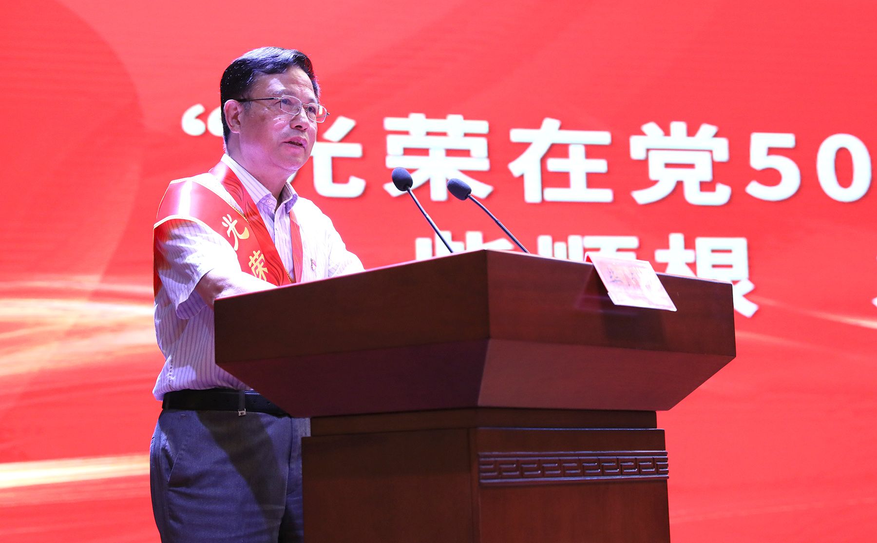 “光荣在党50年”党员代表,乐鱼app官网登录入口纪委原书记、校关心下一代工作委员会常务副主任柴顺根同志发言,并带领新党员代表入党宣誓、全体党员代表重温入党誓词。