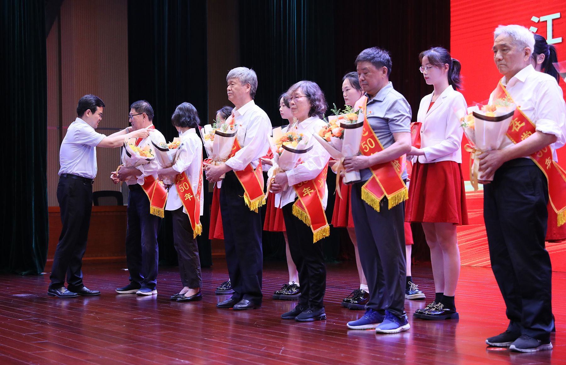 为庆祝中国共产党成立103周年,引导广大师生党员牢记初心使命,永葆奋斗本色,6月26日,乐鱼app官网登录入口举行“光荣在党50年”纪念章颁发仪式暨党纪学习教育专题党课。