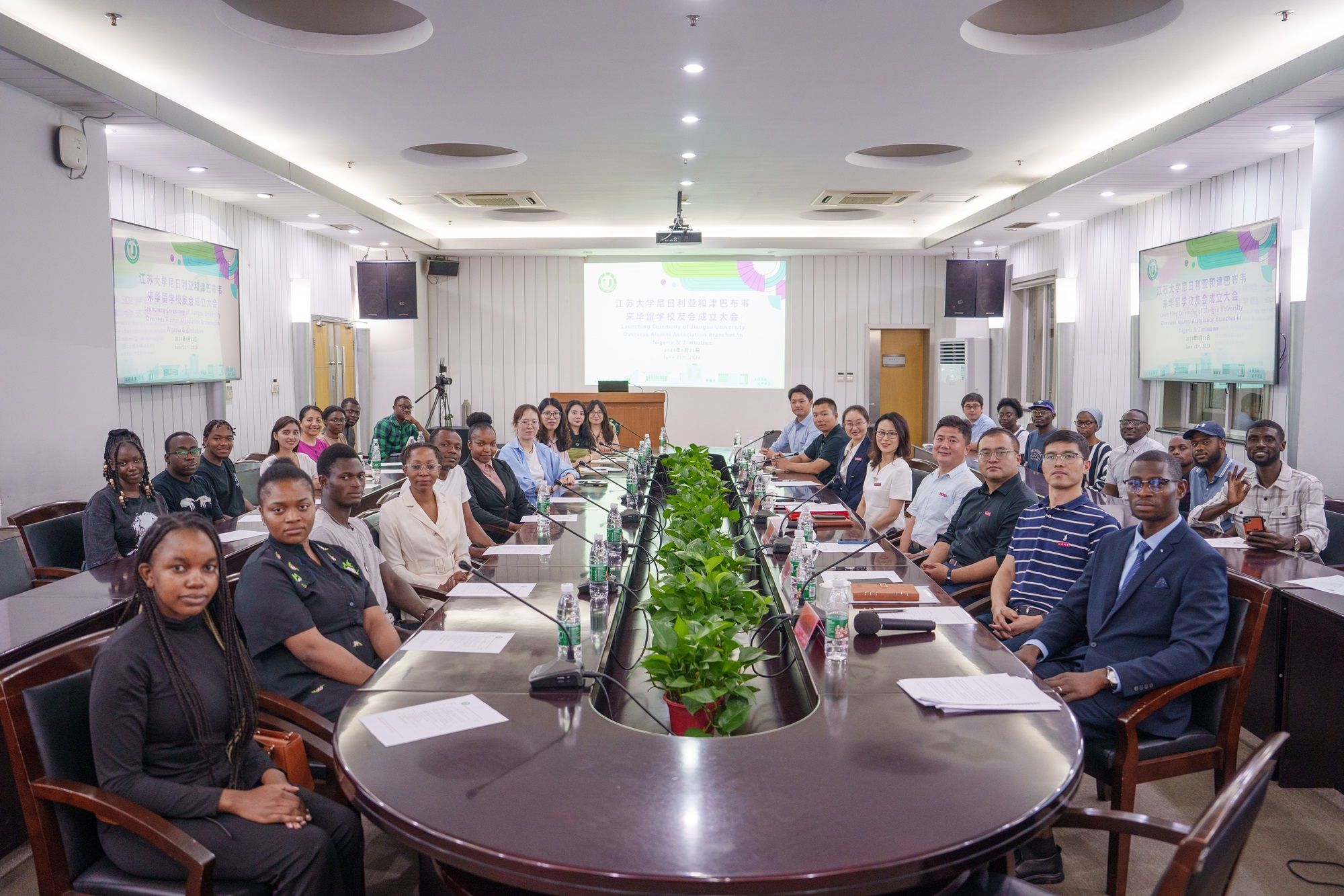 6月21日,乐鱼app官网登录入口尼日利亚和津巴布韦来华留学校友会成立大会举行。校党委常委、副校长邹小波、蔡英凤,校友总会秘书长李国昊、海外教育学院党政领导班子成员及相关师生代表参加大会。