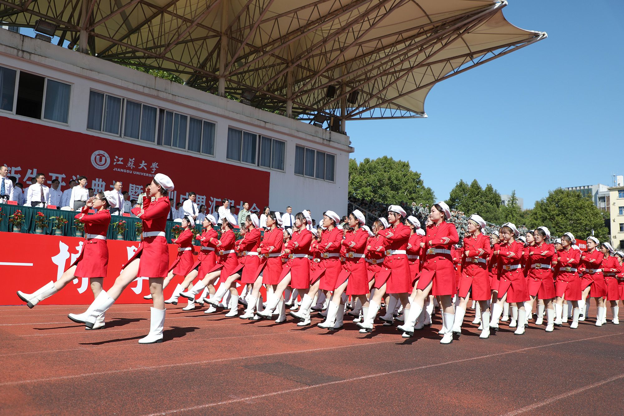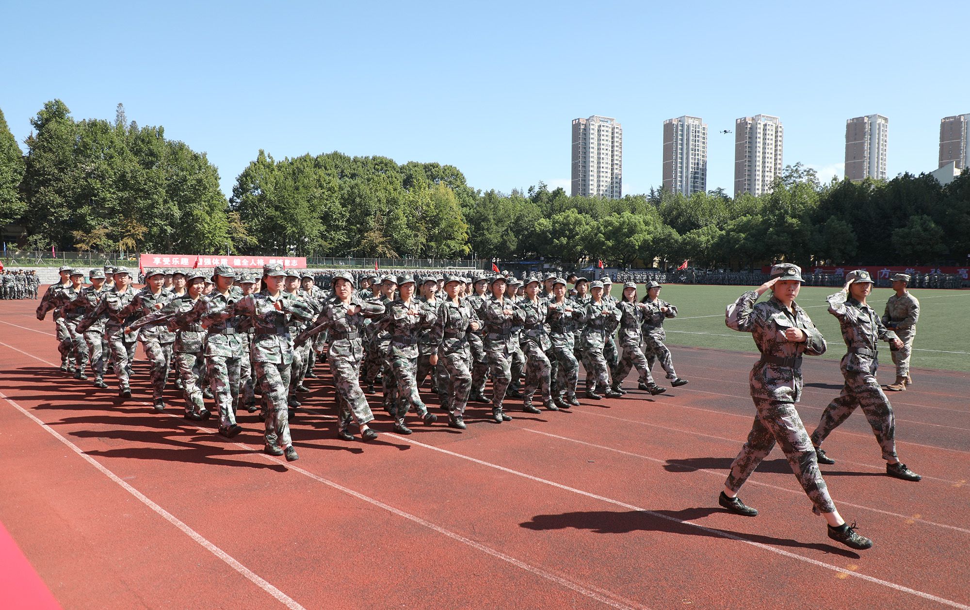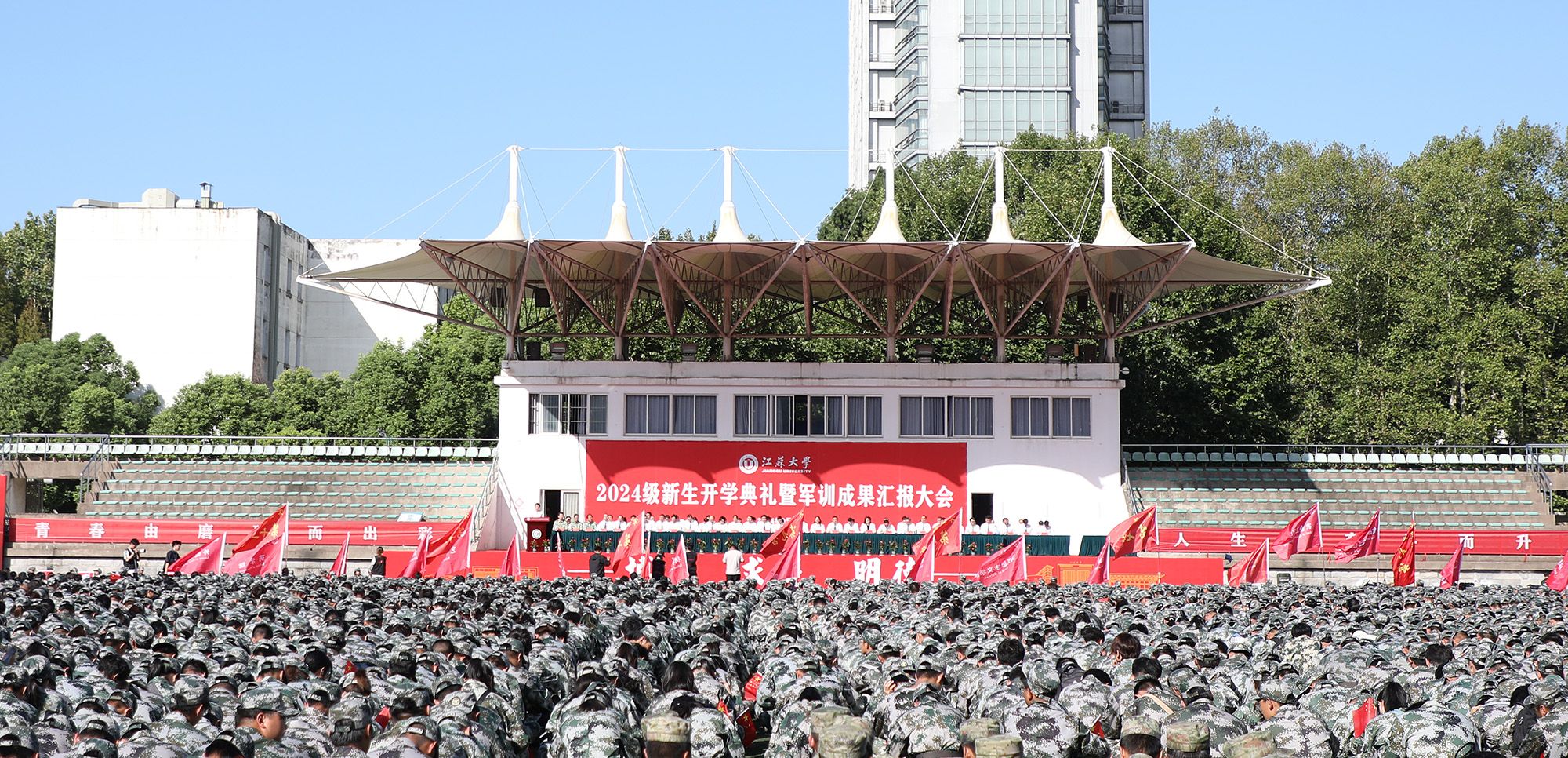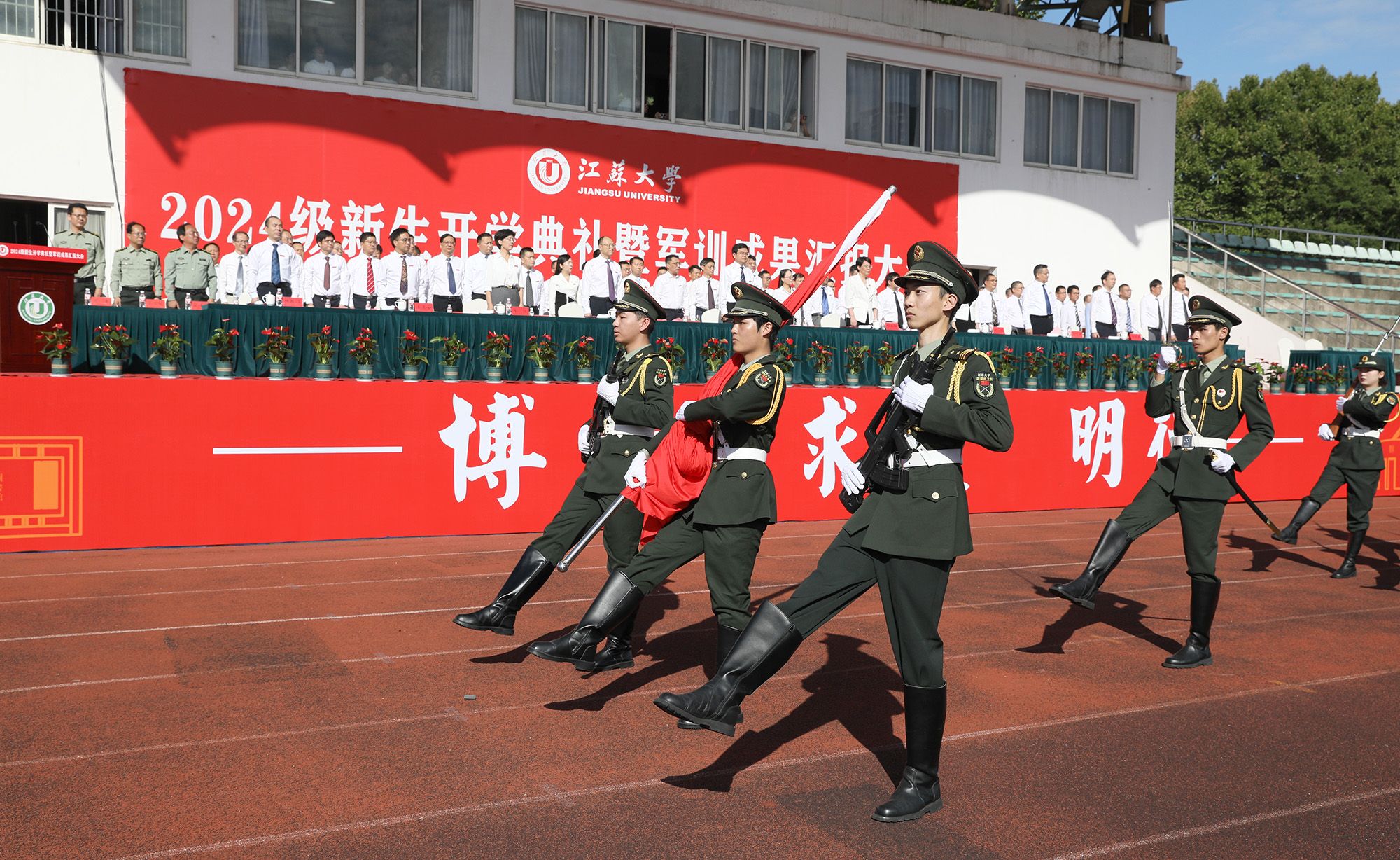 开学典礼后举行了2024级本科生军训成果汇报大会。