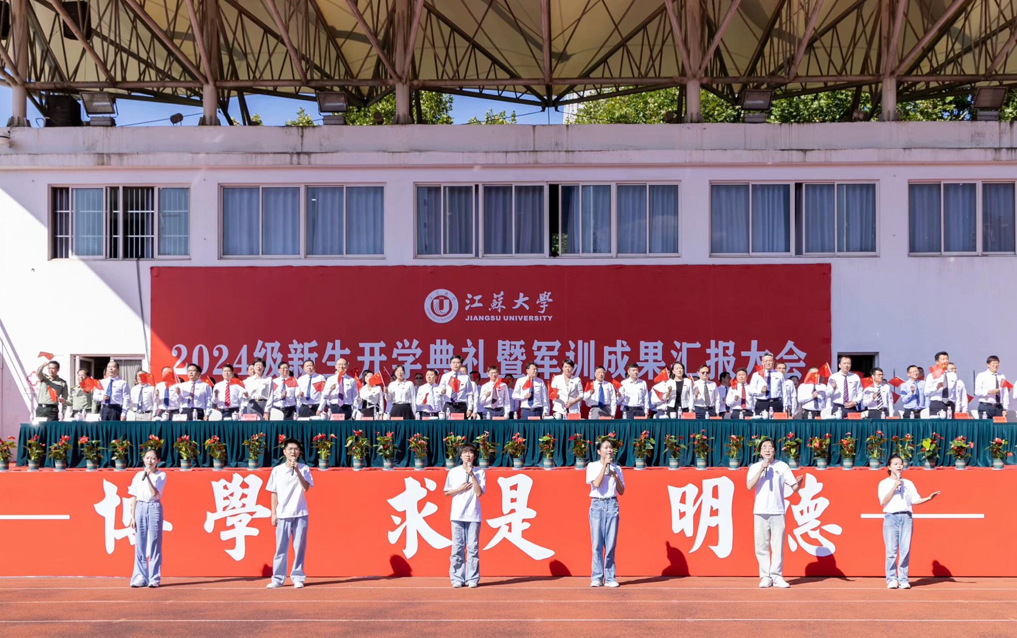 全体在校校领导、党委常委,相关职能部门领导,各学院、书院主要领导,各学院分管学生工作的副书记、新生辅导员,全体2024级新生参加开学典礼。