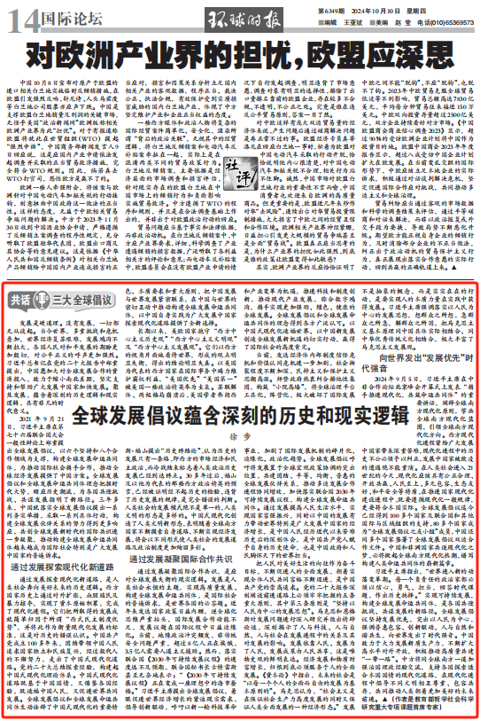10月10日,乐鱼app官网登录入口全球发展与安全研究院理事长、教育部哲学社会科学研究重大专项课题首席专家徐步在《环球时报》第14版发表长篇理论文章《全球发展倡议蕴含深刻的历史和现实逻辑》,就全球发展倡议和全球发展命运共同体理念的内在逻辑、现实意义和时代价值提出创新性观点。