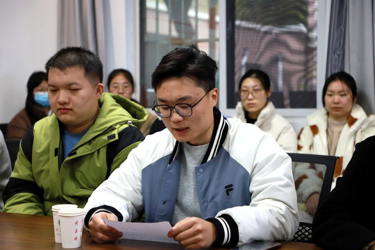 活动中,管理学院本科生党员俞倩霞分享了自己的成长经历,汇报了自己经过不断努力已成功保研至上海大学,也介绍了支部的组织生活情况。管理学院物流2202班班长杜钰灵表示,班级同学目标明确,在班风学风建设、科研比赛、创新能力等方面均有所突破,超过半数的同学都在为考研、考公或就业做准备,班风学风良好。财经学院金融2102班陈楚汶汇报了宿舍发展情况,并介绍了自己努力参加科研比赛、社会实践和志愿服务经历,现已成功保研至中国海洋大学。
