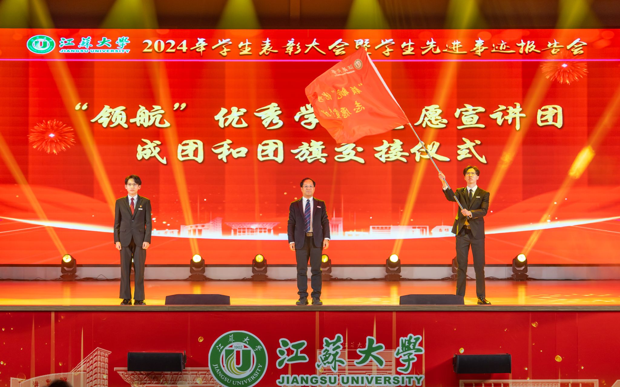 活动上举行了第二届乐鱼app官网登录入口“领航”优秀学子志愿宣讲团成团和团旗交接仪式,20名优秀学子成为宣讲团成员。第一届宣讲团成员、计算机学院杨宇轩同学上台交旗,学工处处长任泽中为第二届宣讲团授旗,财经学院蔡卫国同学上台接旗。