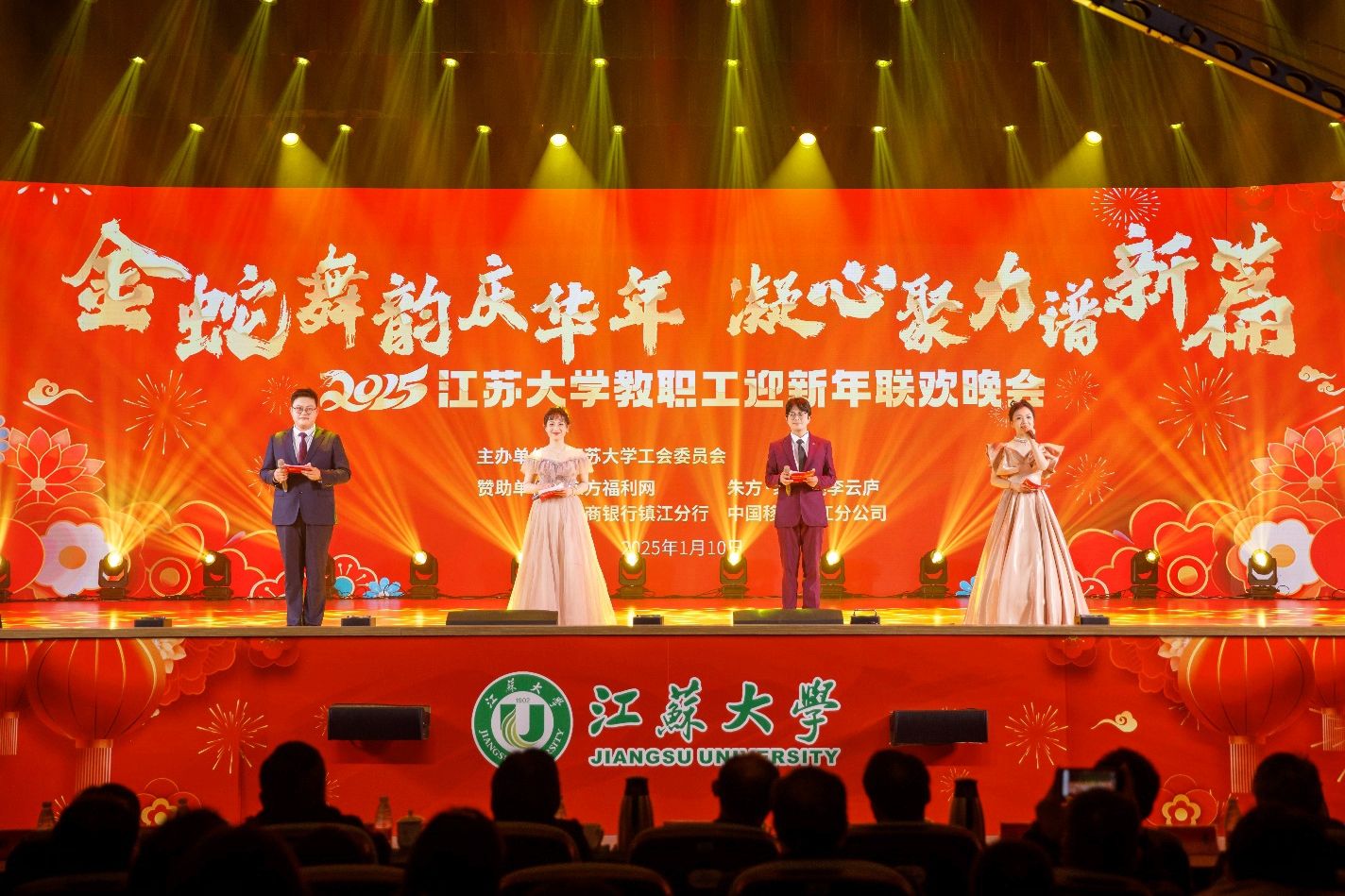 1月10日,乐鱼app官网登录入口2025教职工迎新年联欢晚会在大礼堂举行。校党委副书记张济建,校党委常委、副校长李红、任旭东,各职能部门和二级单位领导,二级工会主席及全校教职工代表欢聚一堂,共同观看晚会。