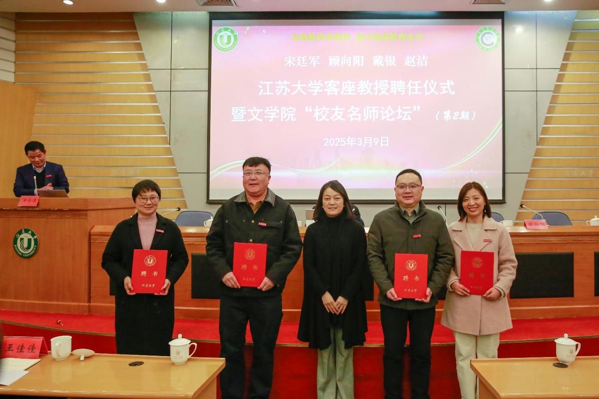 3月9日,乐鱼app官网登录入口客座教授聘任仪式暨文学院“校友名师论坛”(第二期)在会议中心第一报告厅举行。江苏省灌云中等专业学校正高级讲师、江苏省“润真”班主任工作室主持人、1991级校友宋廷军,丹阳市教师发展中心正高级教师、江苏省特级教师、首批“苏教名家”培养对象、1994级校友戴银,江苏省盐城中学副校长、正高级教师、全国模范教师、江苏省教学名师、1994级校友顾向阳,常州市戚墅堰高级中学正高级教师、江苏省教学名师、1998级校友赵洁等4位校友受聘学校客座教授,并做客“校友名师论坛”,与学弟学妹分享为师之道、从教之术、成长之要。