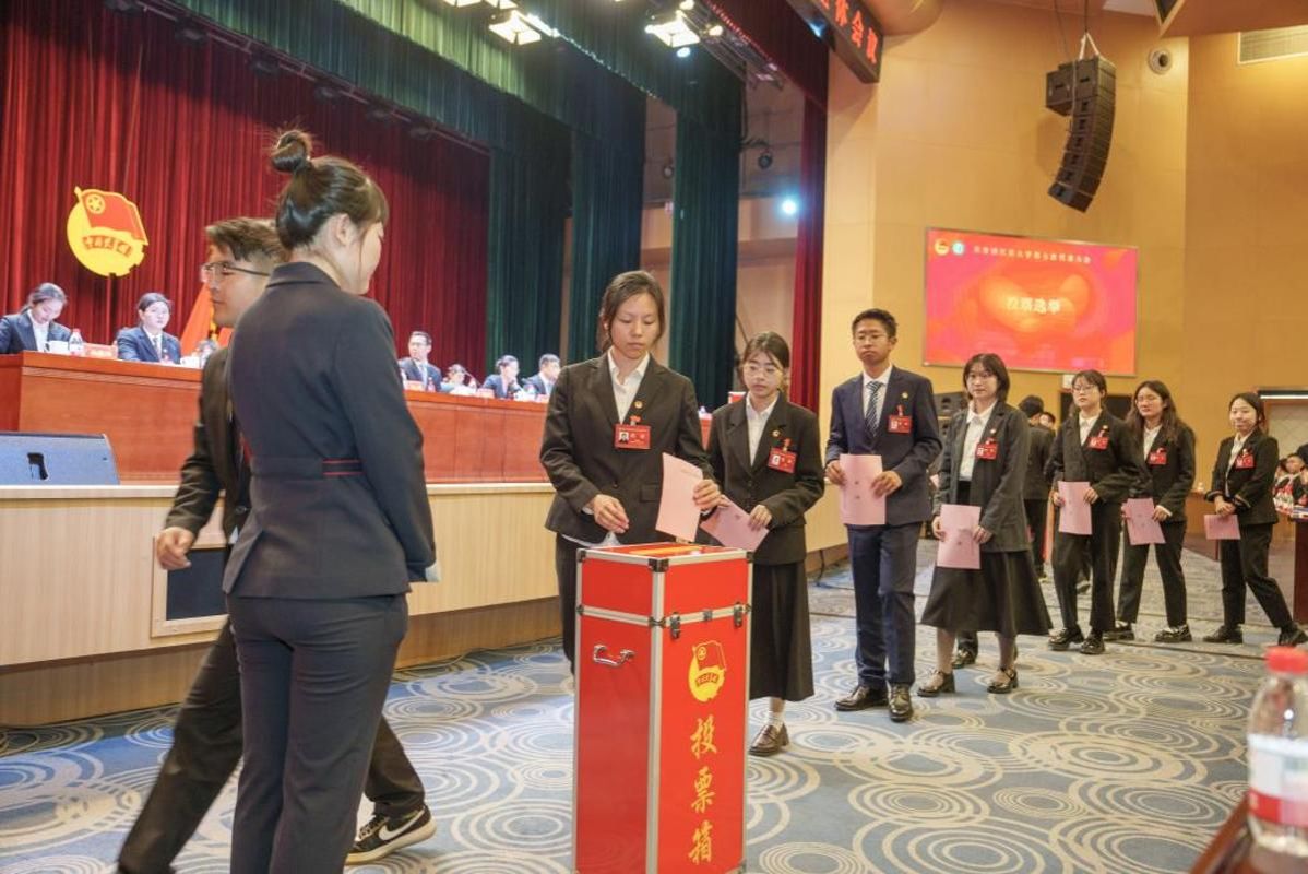 在第二次全体会议上,大会依次审议通过了大会选举办法(草案)、大会选举工作人员名单(草案),并选举产生共青团乐鱼app官网登录入口第七届委员会;会议还审议通过了工作报告决议(草案),并宣读了《乐鱼app官网登录入口第七次团代会倡议书》。大会在《国际歌》声中闭幕。