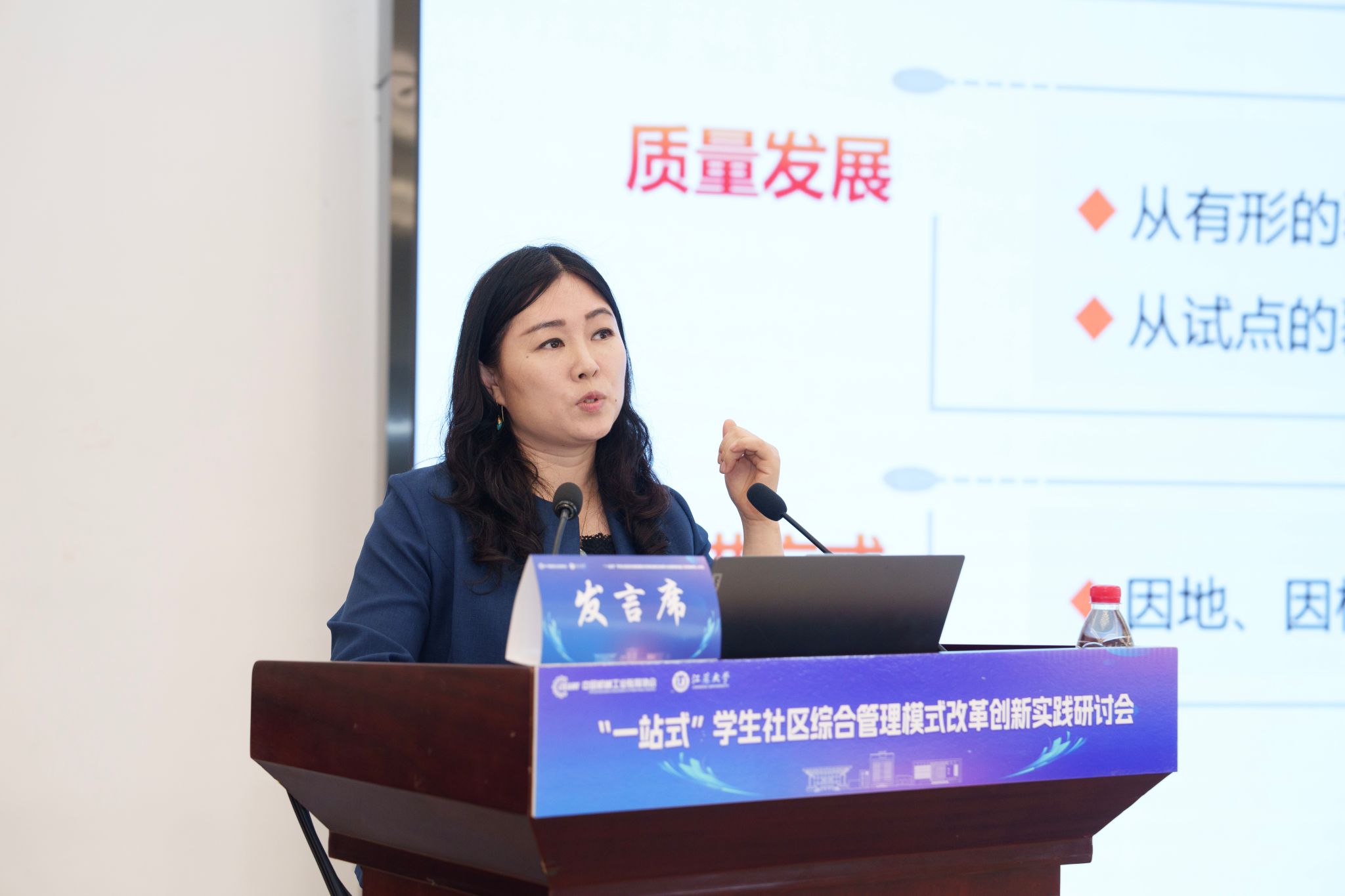 开幕式后,5位知名专家学者围绕“一站式”学生社区综合管理模式改革创新分别作主题报告,为推进“一站式”学生社区建设提供了宝贵参考。王慧敏系统阐述了全国高校思想政治工作网工作开展情况和数智赋能学生社区管理的创新应用与实践路径。苏州大学党委学生工作部部长董召勤立足高校“一站式”学生社区建设实践,针对共性难题提出了具有可操作性的解决方案。南京大学党委学生工作部副部长李兴华分享了“五个一”建设模式下构建师生成长共同体的创新经验。乐鱼app官网登录入口党委学生工作部部长任泽中解读了“主治·共治·自治·智治”学生社区治理新模式的实践探索。金智教育研究院学生管理与服务中心主任谭利娟从社区育人视角,分享了高校数据应用建设的典型案例。