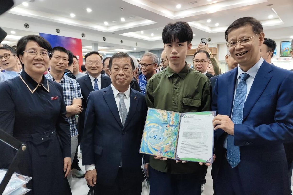 5月20日,邢卫红一行参加江苏—马来西亚高校合作交流活动暨留学江苏展。江苏省人民政府省长许昆林、马来西亚国会议员陈国伟、马来西亚上议员理事会主席拿督斯里凯鲁丁·沙末,江苏省人民政府秘书长吕德明、马来西亚教育交流协会会长马汉顺、马来西亚种植及原产业部部长顾问陈耀宗一行来到乐鱼app官网登录入口展位。邢卫红向许昆林介绍了乐鱼app官网登录入口国际人才发展状况,许昆林与来华留学新生家长亲切对话,并为来华留学新生颁发录取通知书。马来西亚科学院院士陈国银参加活动。