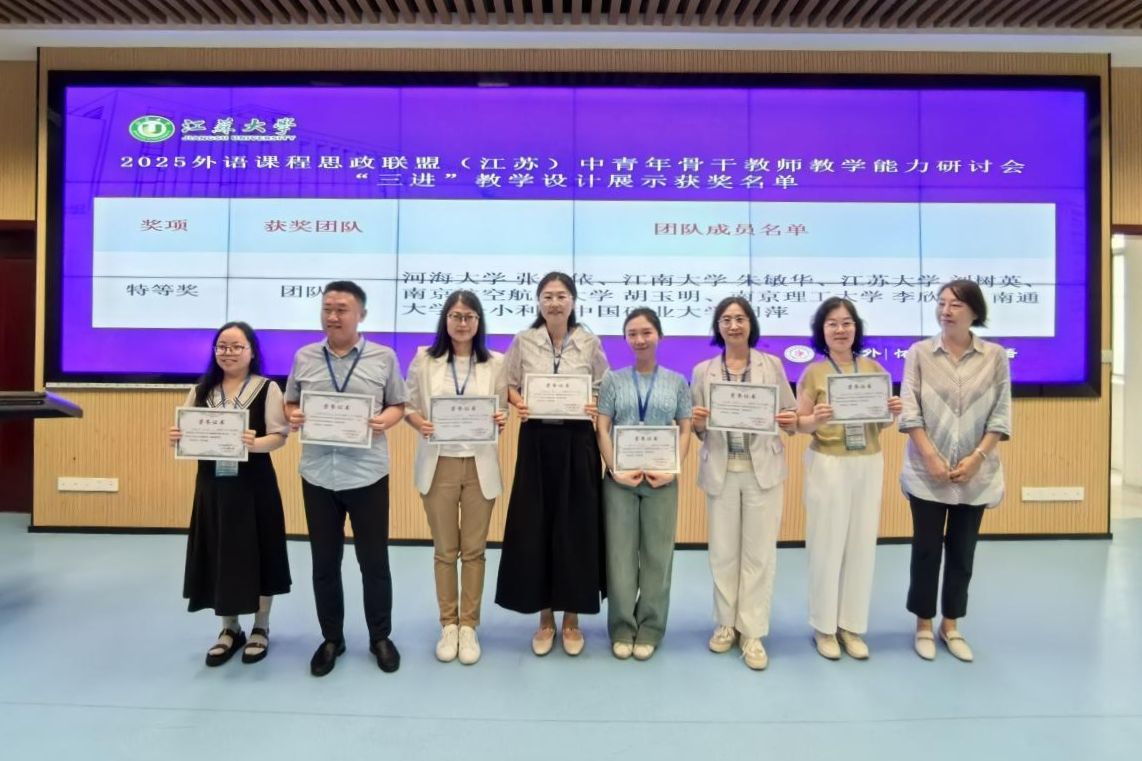 会上正式发布了外语课程思政联盟(江苏)LOGO。2023年,“外语课程思政四校联盟”正式成立;2024年,“外语课程思政四校联盟”首届中青年骨干教师教学能力研讨会成功举办;2025年,中国矿业大学、南通大学、乐鱼app官网登录入口加入联盟,成立外语课程思政联盟(江苏)。