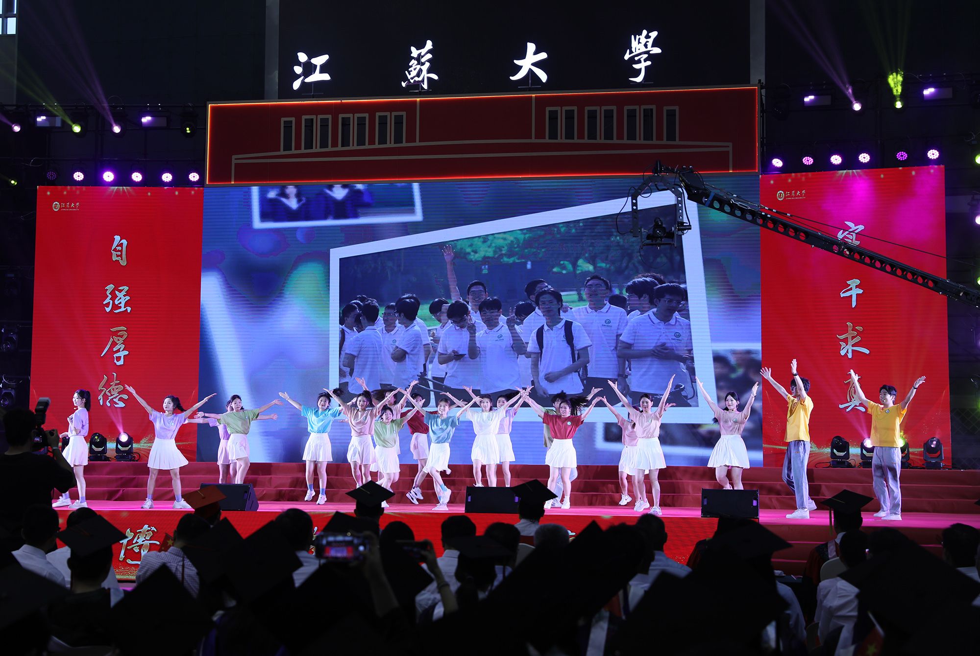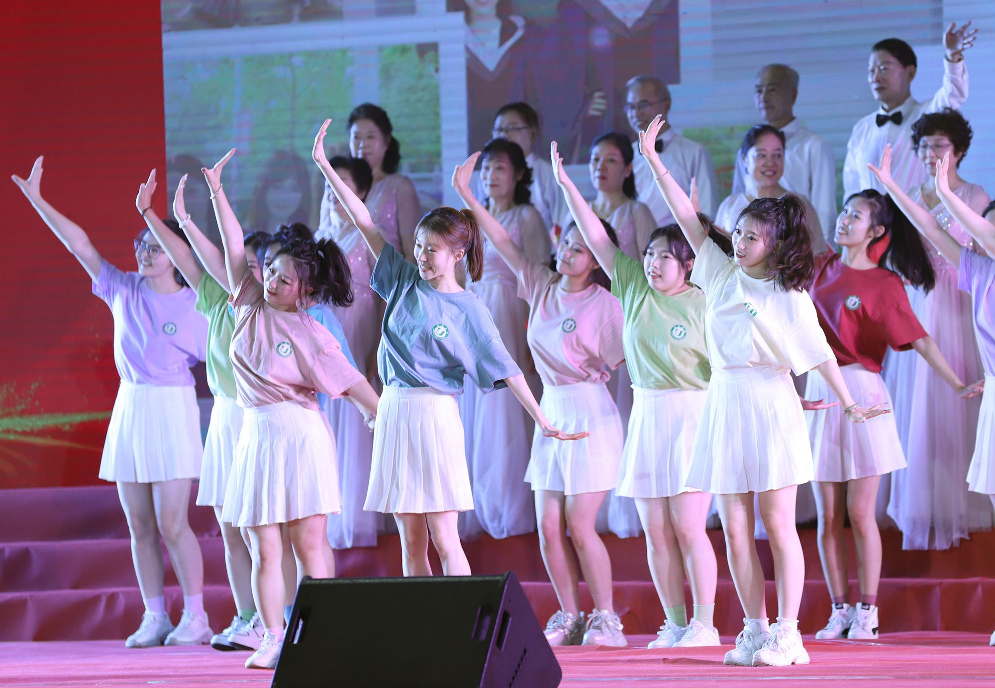 典礼上,师生代表表演了情景朗诵、歌舞等文艺节目,回顾乐鱼(中国)时光与青春岁月。典礼最后,全场起立,合唱校歌《百年辉煌向未来》,表达对母校的深切热爱与坚定承诺。