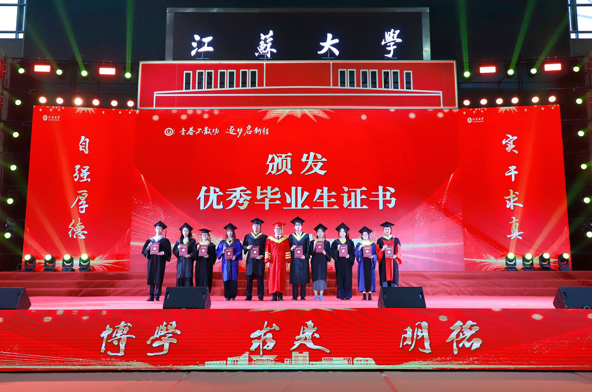 典礼上举行学位授予仪式。校领导、党委常委为授予博士学位、硕士学位、学士学位代表颁发学位证书并扶正流苏。