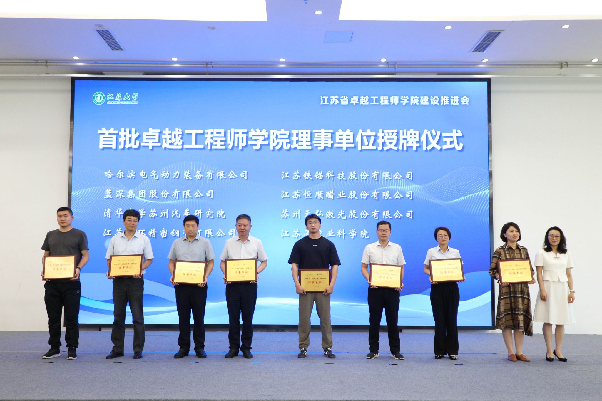 7月3日,乐鱼app官网登录入口江苏省卓越工程师学院建设推进会暨理事会成立会举行。副校长、研究生院院长、卓越工程师学院院长蔡英凤,中汽院(江苏)汽车工程研究院有限公司、国家农业信息化工程技术研究中心、南水北调东线江苏水源有限责任公司、中国科学院工程热物理研究所、广西玉柴机器股份有限公司、中国航发贵州红林航空动力控制科技有限公司、江苏省农业科学院、苏州汇川联合动力系统股份有限公司、江苏沃得农业机械股份有限公司、蓝深集团股份有限公司等30多家央国企和民企单位代表、19家卓工项目建设团队的校内外负责人,人事处、教务处、科技处、产学研处、学工处、各学院主要负责人等100余人出席会议。会议由研究生院常务副院长、卓越工程师学院执行院长朱孝勇主持。