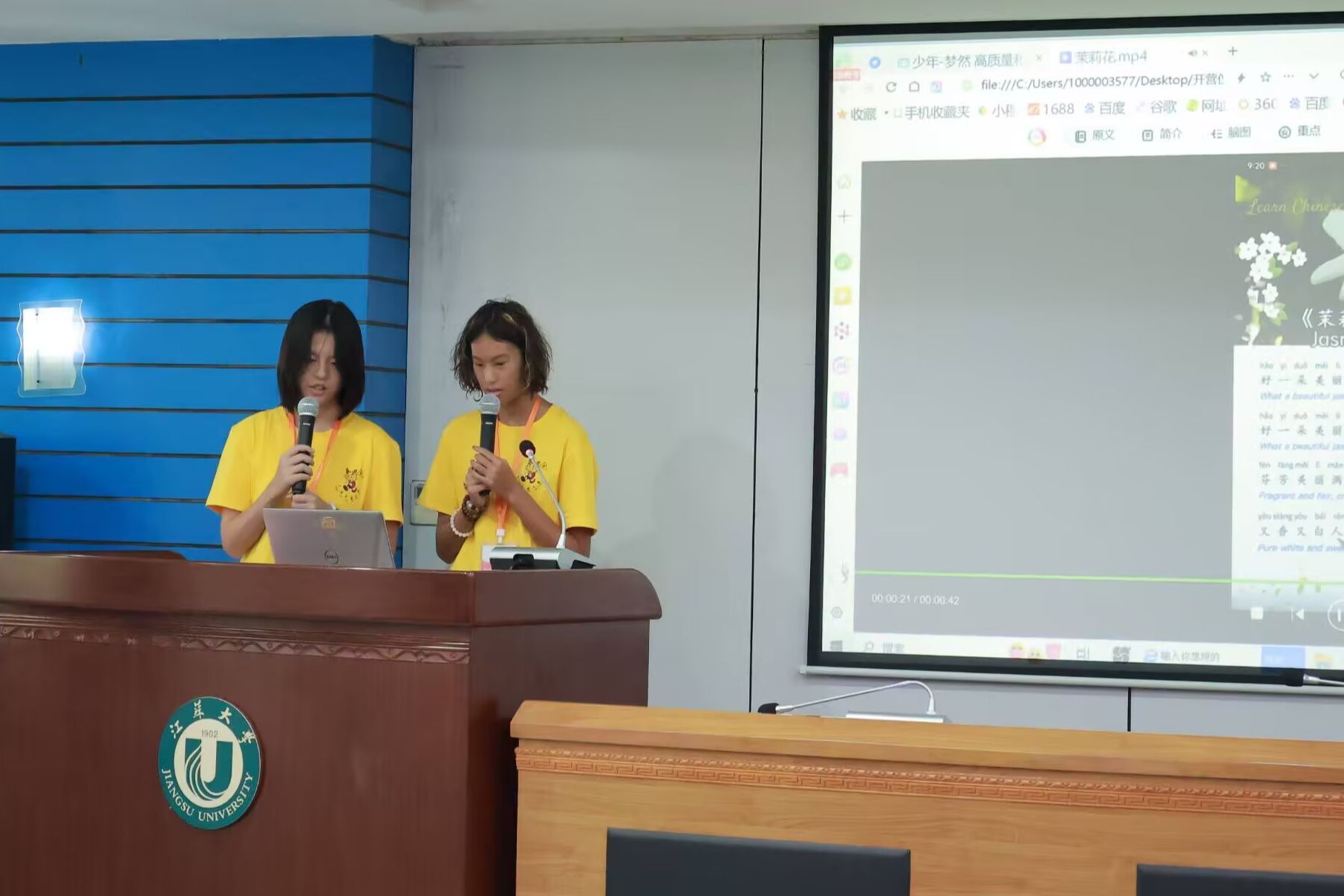 开营仪式上,精彩纷呈的文艺表演展现了传统与现代、东方与西方的文化交融。乐鱼app官网登录入口教师、非遗古琴传习人吴芸莉带来了古琴独奏《酒狂》,西班牙营员沈馨宜表演了舞蹈,加拿大营员郭伯恩和郭安雅演绎了男女声二重唱《推开世界的门》,何舒窈和李馨怡倾情献唱江苏民歌《茉莉花》,乐鱼app官网登录入口志愿者团队以饱含深情的原创朗诵《北固山下的寻根之旅》诠释了文化寻根的情怀。
