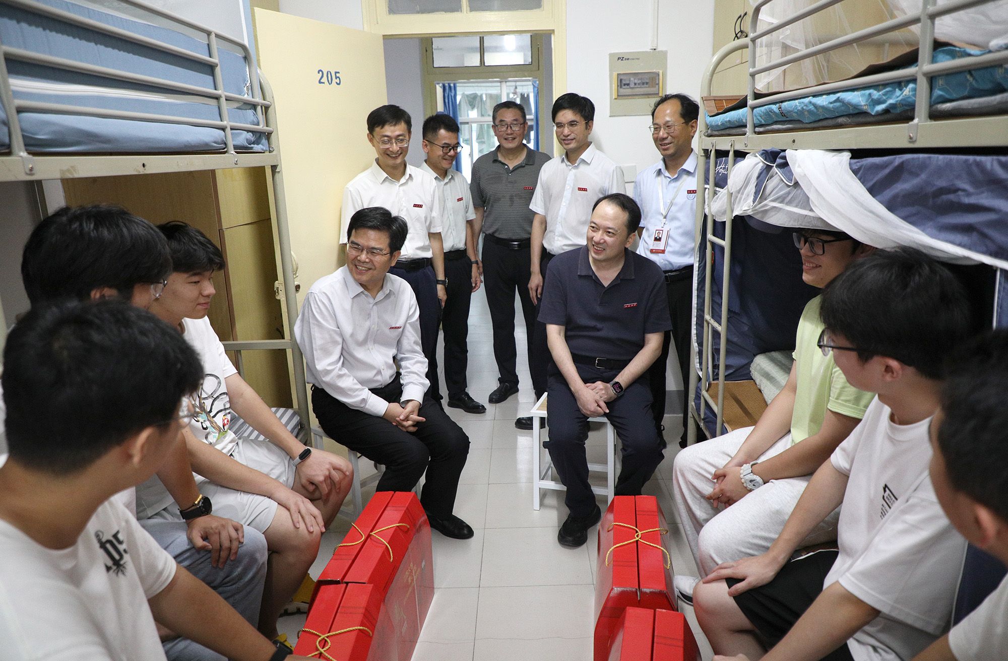 校党委书记李洪波、副校长任旭东及各职能部门负责人深入迎新一线,走访各接待点与学生宿舍,详细询问新生报到进度、住宿安排及后勤保障细节,慰问志愿者与工作人员。走访中,校领导与新生及家长亲切交流,勉励新生“珍惜时光,不负韶华,努力争做优秀的乐鱼(中国)人”,同时要求各部门持续优化服务保障,全力营造温馨、安全、有序的入学环境。