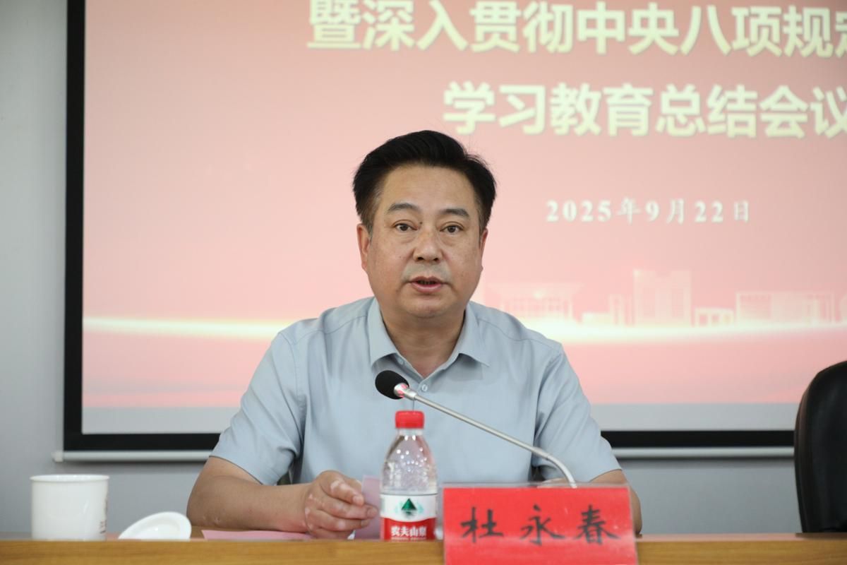 校党委常委、纪委书记、派驻监察专员杜永春领学习近平总书记关于深入贯彻中央八项规定精神学习教育的重要指示精神,传达学习中央、省委党的建设工作领导小组会议精神。