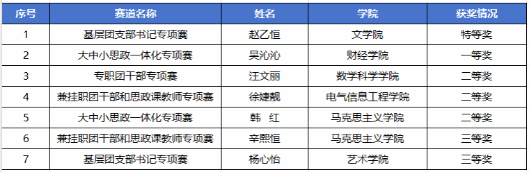 本届比赛由共青团江苏省委、中共江苏省委教育工委、江苏省社会科学院和江苏省学生联合会联合主办,分为省级初赛线上评审和省级决赛线下展示两个环节。其中,省级决赛共吸引全省200余名专职团干部、兼挂职团干部和思政课教师、基层团支部书记同场竞技、同题共答。我校遴选推荐10人参赛,7人获奖。