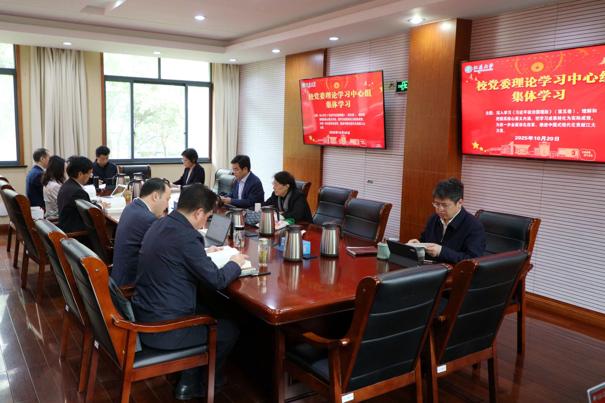 10月20日,校党委理论学习中心组在行政一号楼201会议室围绕《习近平谈治国理政》第五卷开展集体学习。在校校党委理论学习中心组成员参加学习,集体学习由校党委书记李洪波主持。