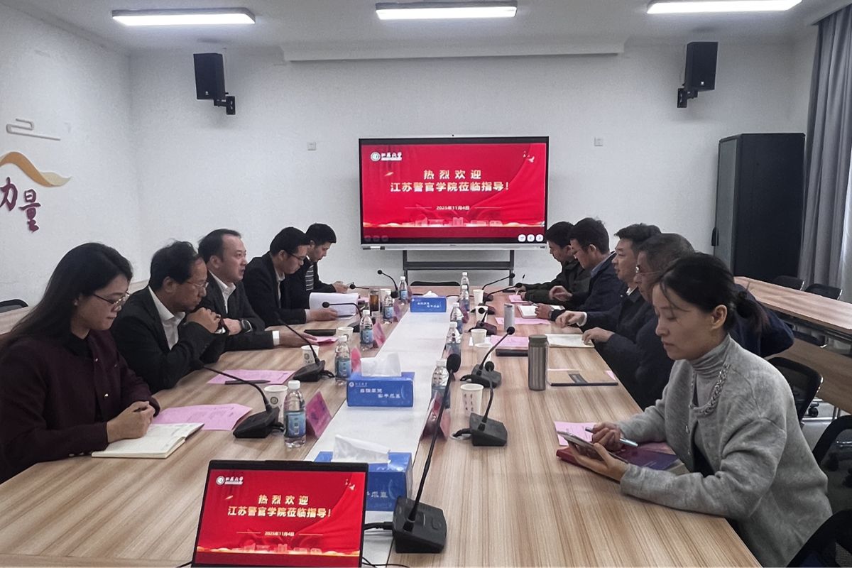11月4日,江苏警官学院党委委员、纪委书记、派驻监察专员殷其新,党委委员、副院长张敏一行来校调研。校党委常委、副校长任旭东,校党委常委、纪委书记、派驻监察专员杜永春接待来访一行。