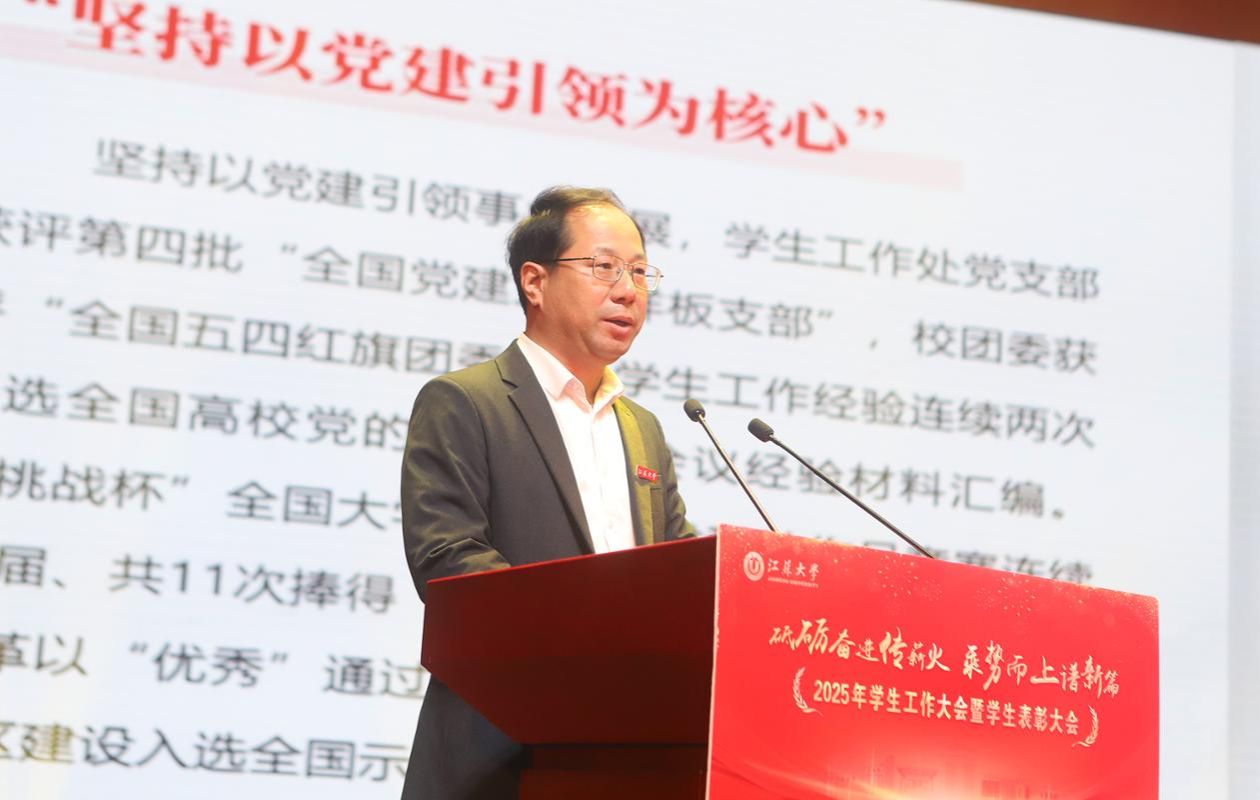 李洪波在大会上发表讲话,代表学校向辛勤耕耘在学生工作一线的同志们致以崇高敬意,向获得表彰的集体和个人表示热烈祝贺,向全校青年学子致以亲切问候。李洪波说,学生工作是落实立德树人根本任务的重要支撑。过去一年,学校学生工作成果丰硕,展现了师生开拓进取、团结奋进的精神风貌。乐鱼(中国)学子在求知问学、创新实践、服务社会的广阔舞台上奋发有为,涌现出一大批先进典型。李洪波指出,学校正处在“十四五”收官、“十五五”谋划的关键时期,也是奋力推进“双一流”创建的攻坚期。面对新形势新任务,学生工作必须把握新要求、展现新作为,努力为学校奋进一流提供坚强支撑。他强调,今后一个时期的学生工作要把准方向、聚焦重点,以更高标准提升育人实效;要建强队伍、激发活力,以更实举措打造育人铁军;要激扬青春、筑梦未来,以砥砺奋斗书写人生华章。李洪波希望师生以更加饱满的热情、更加务实的作风,扎实奋斗、砥砺前行,共同谱写学生工作高质量发展的新篇章,努力为学校“双一流”创建和特色鲜明高水平大学建设作出新的更大贡献。