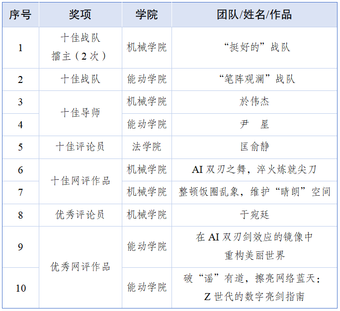 校团委依托全国高校共青团新媒体示范工作室、全省共青团新媒体示范工作室平台,从赛事发动、队伍优化、作品打磨等维度,精心备赛。下一步,校团委将持续深化网络育人实践,不断建强新媒体创作矩阵,鼓励师生聚焦时事热点、校园生活等议题,创作更多兼具思想性、传播力、影响力的优质网络文化作品,引导青年学子为青春发声、为时代赋能。(校团委  机械学院团委  能动学院团委)