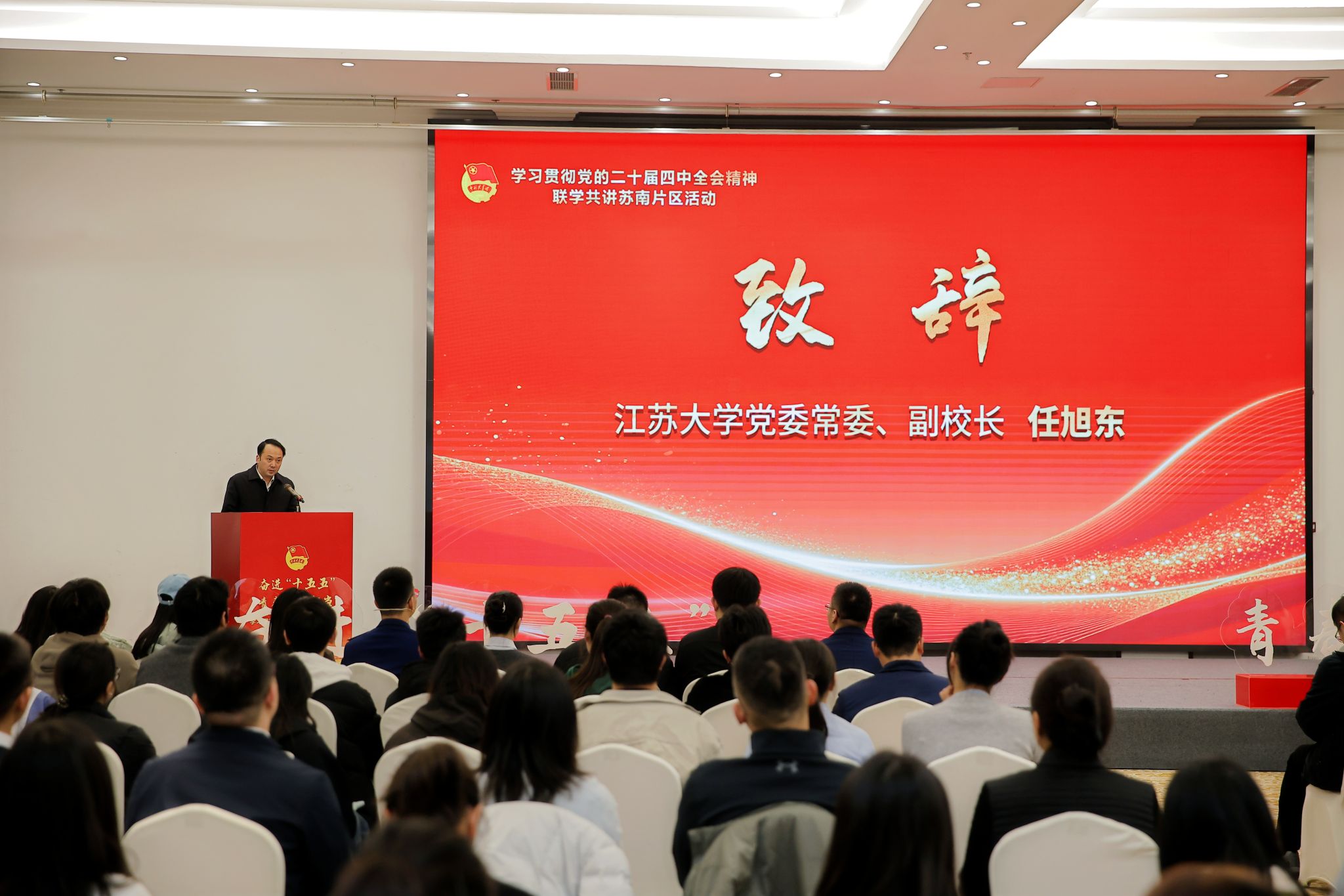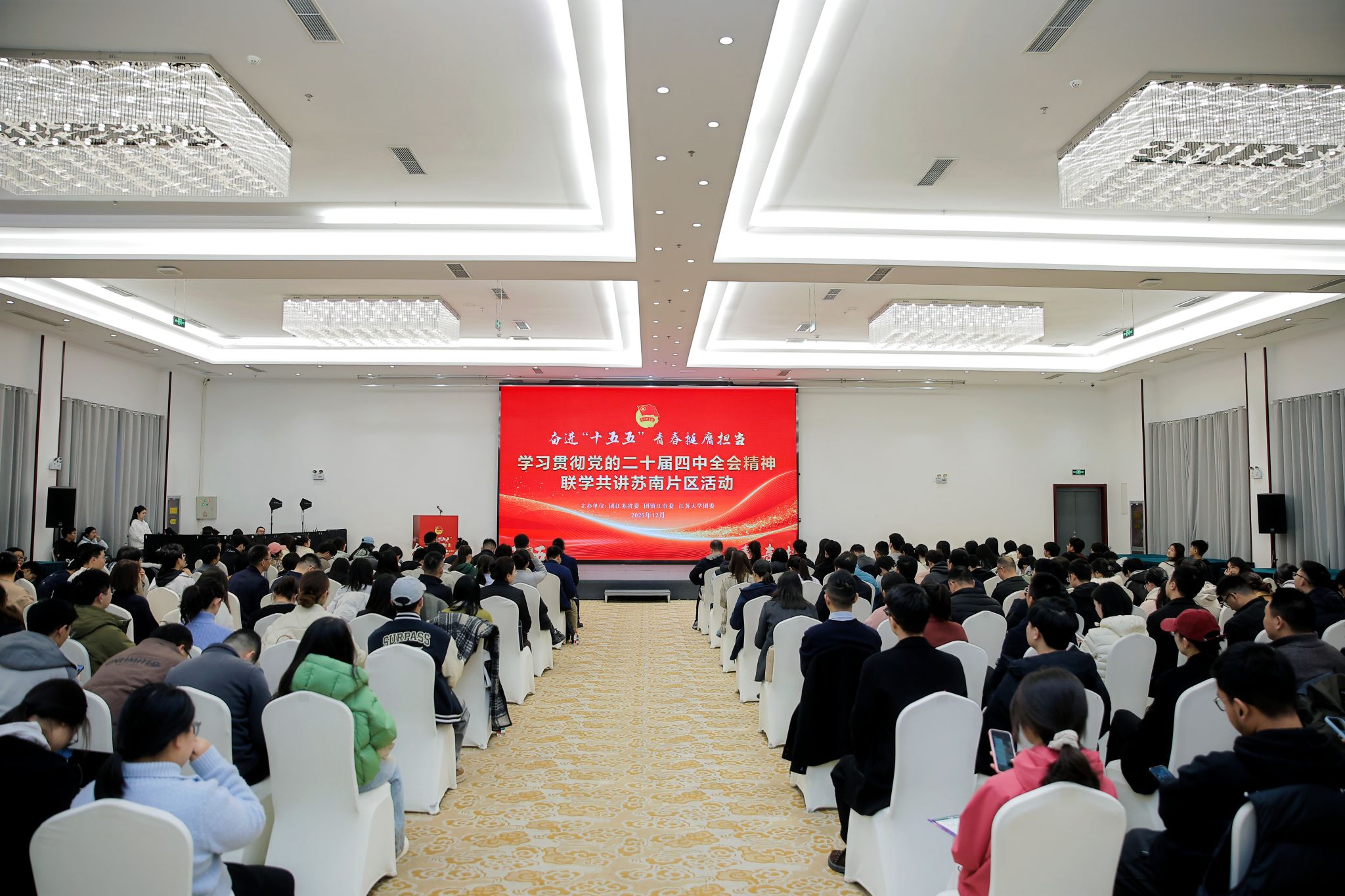 12月9日,学习贯彻党的二十届四中全会精神联学共讲苏南片区活动在镇江举办。活动由团江苏省委、团镇江市委、乐鱼app官网登录入口共同主办。团省委副书记翟胜丞,校党委常委、副校长任旭东,团省委宣传部部长董悦、新媒体发展中心主任孙洪洋,南京、无锡、常州、苏州、镇江等5市团委分管书记、宣传部长,以及青年讲师团代表、团干部代表、青年师生代表等200余人参加活动。
