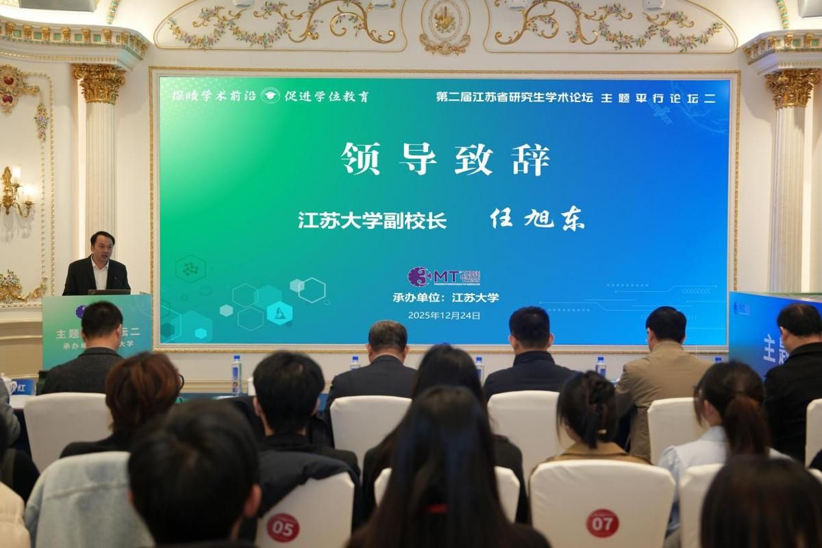 党委常委、副校长任旭东代表学校致辞,介绍了乐鱼app官网登录入口的办学历史和发展概况,以及学校近年来在研究生人才培养取得的成绩。任旭东指出,研究生作为高层次创新人才的储备力量,肩负着传承学术薪火、服务国家发展的时代重任,希望同学们以论坛为契机,找准学术研究与社会发展的结合点,让青春才智在服务江苏高质量发展中绽放光彩。