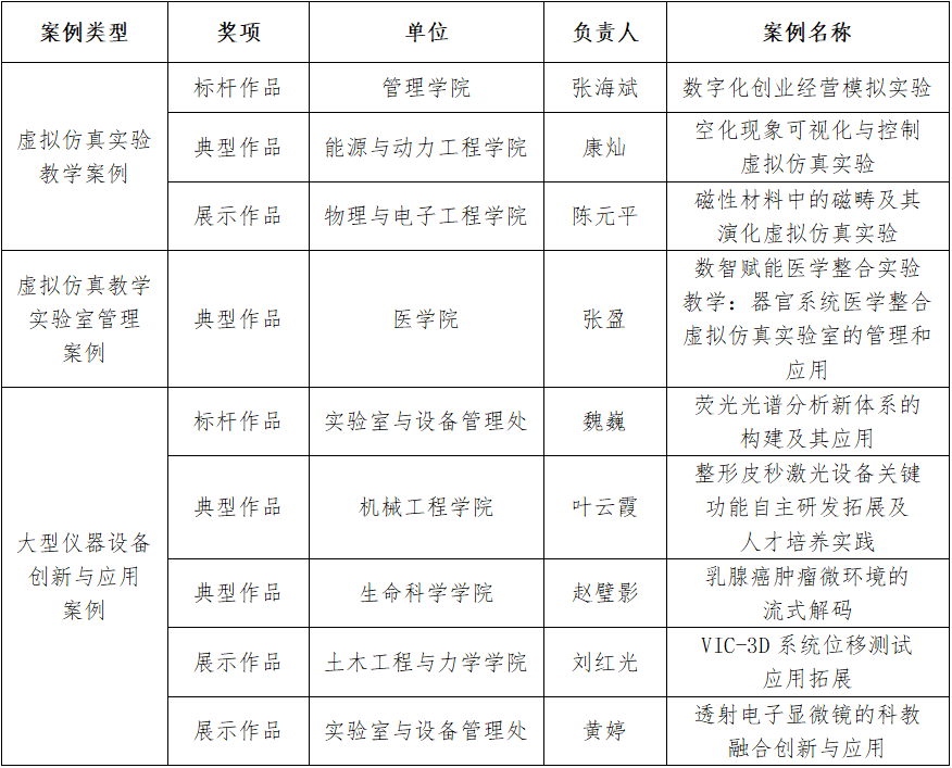 近日,在教育部教育技术与资源发展中心(中央电化教育馆)开展的2025年全国师生信息素养提升实践活动(第二十九届教师活动)中,“高等学校虚拟仿真教学创新实验室”项目2025年度案例征集评选结果正式公布。我校9项案例均入选,获奖总量列全国第4,其中张海斌团队的实验教学案例、魏巍团队的大型仪器设备创新与应用案例首次荣获活动最高奖项“标杆作品”,最高奖项获奖数量列全国第3、全省第1(全省共6项),实现历史性突破。