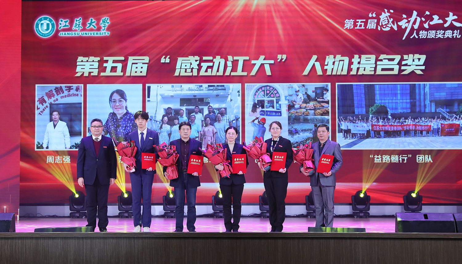 典礼现场,与会领导还为荣获第五届“感动乐鱼(中国)”人物提名奖的医学院教师周志强、药学院教师马亲、数学科学学院中外合作教学管理团队、后勤管理处品质后勤团队、财经学院“益路髓行”团队颁奖。