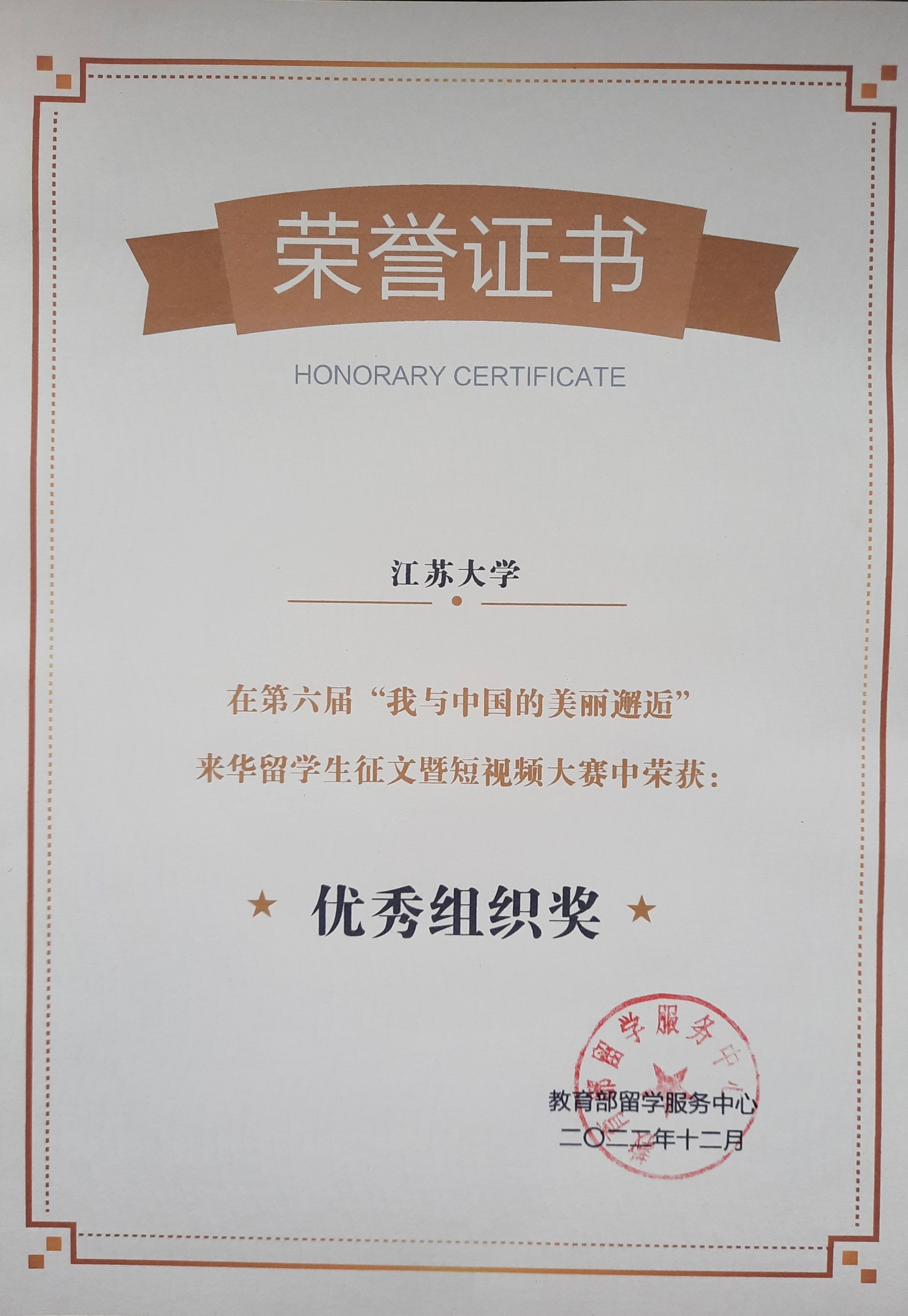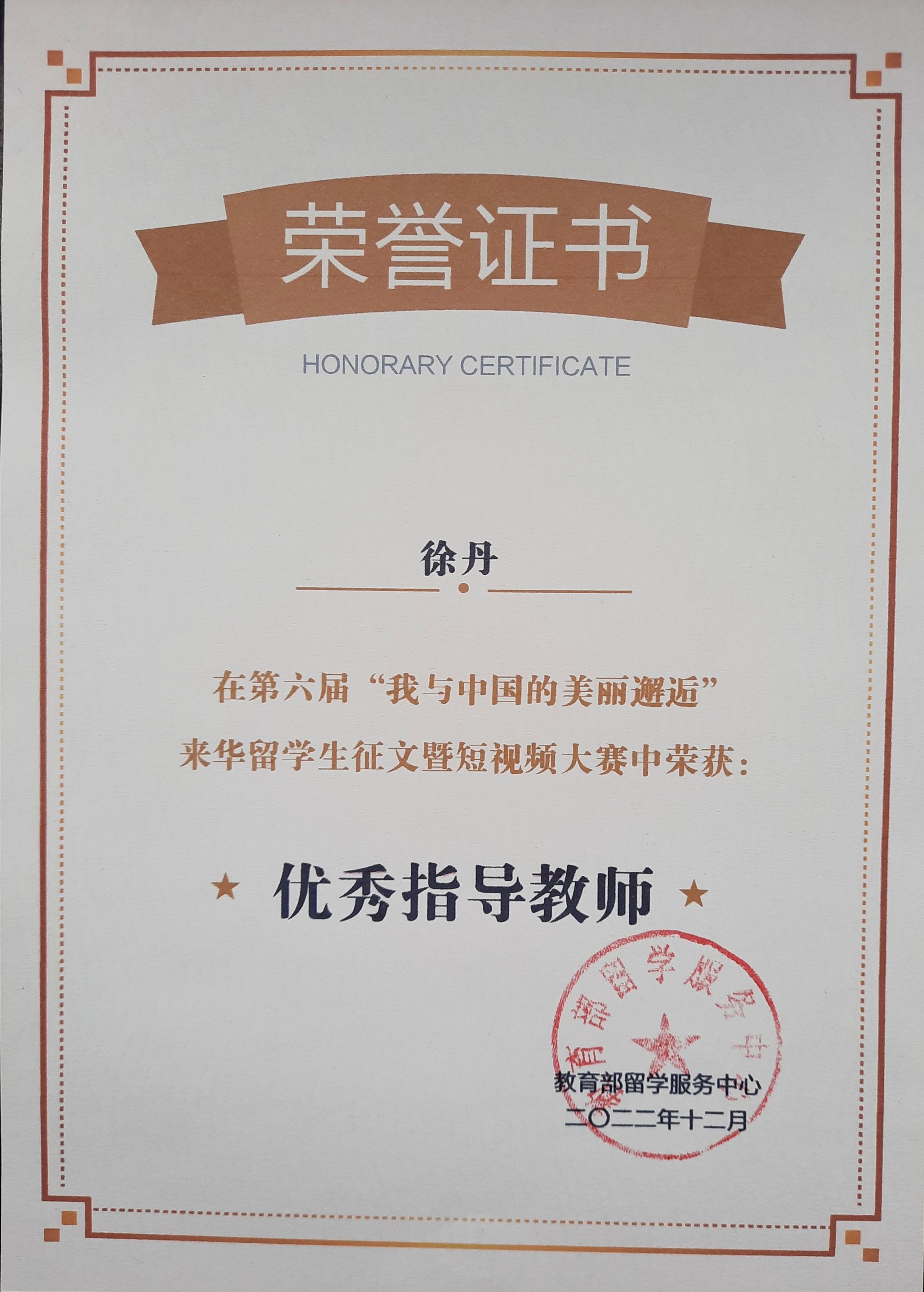 近日,受教育部国际合作与交流司委托,教育部留学服务中心举办的“我与中国的美丽邂逅”第六届来华留学生征文暨短视频大赛结果揭晓,我校津巴布韦籍留学生杨靖征文作品获得全国二等奖,徐丹获“优秀指导教师”,学校获“优秀组织奖”。