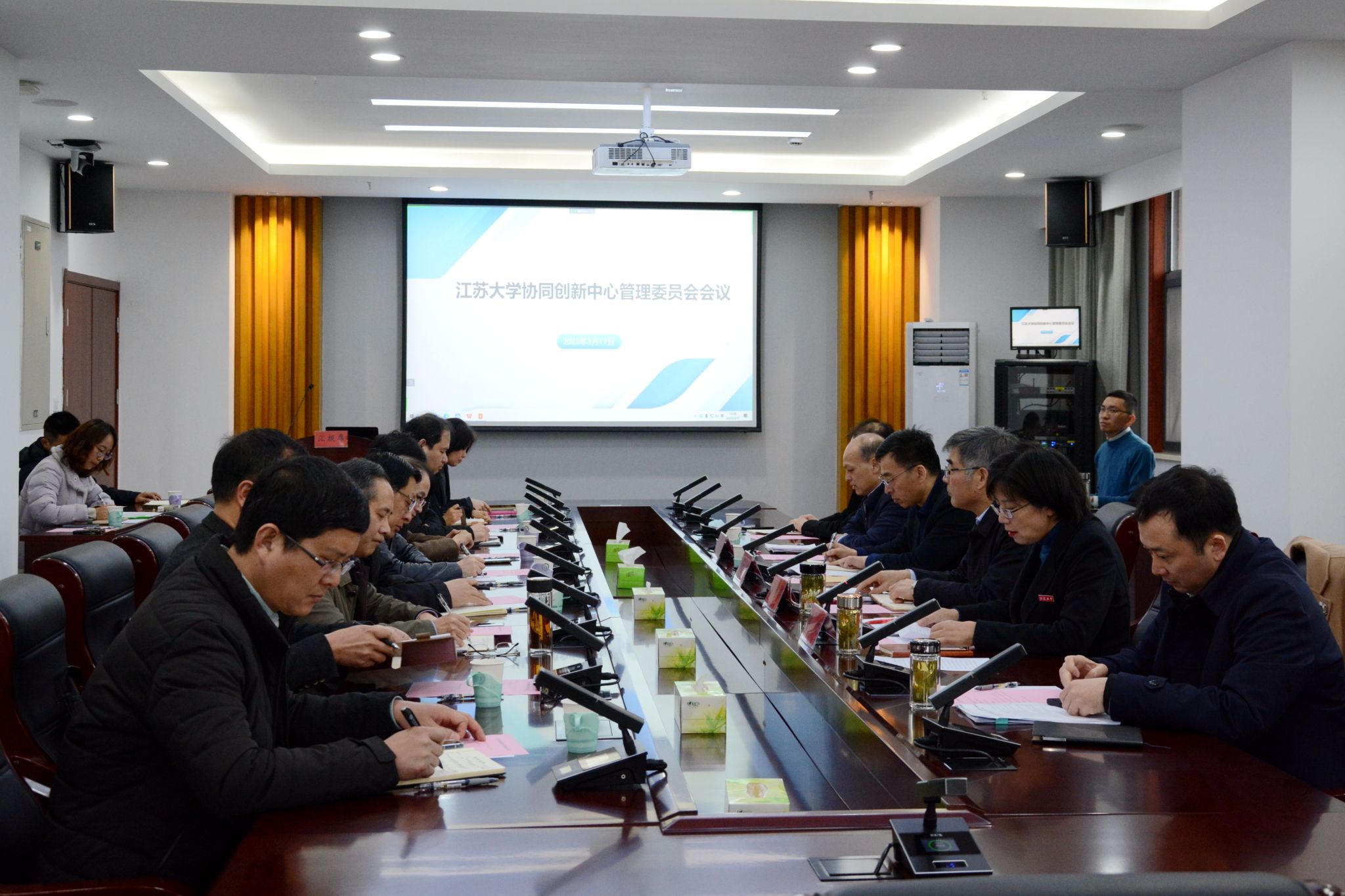 3月17日,学校在耒耜大楼举行2023年度协同创新中心管理委员会会议。省教育厅科学技术与产业化处处长韩叶祥,校党委书记袁寿其、校长颜晓红出席会议。会议以线上线下相结合方式举行,副校长李红主持会议。