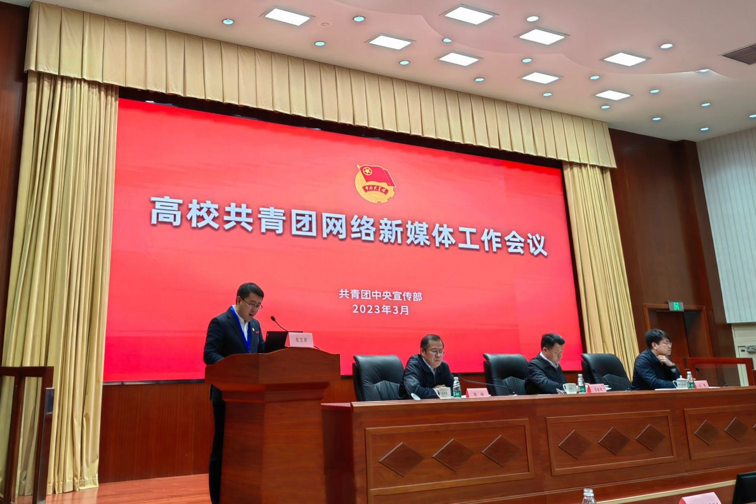 3月22日,2023高校共青团网络新媒体工作交流活动在中国青年政治学院(中央团校)举行,团中央书记处书记傅振邦、团中央宣传部部长郭峰、团中央基层建设部副部长赵博出席会议。我校团委作为全国高校共青团新媒体重点工作室参加交流会。